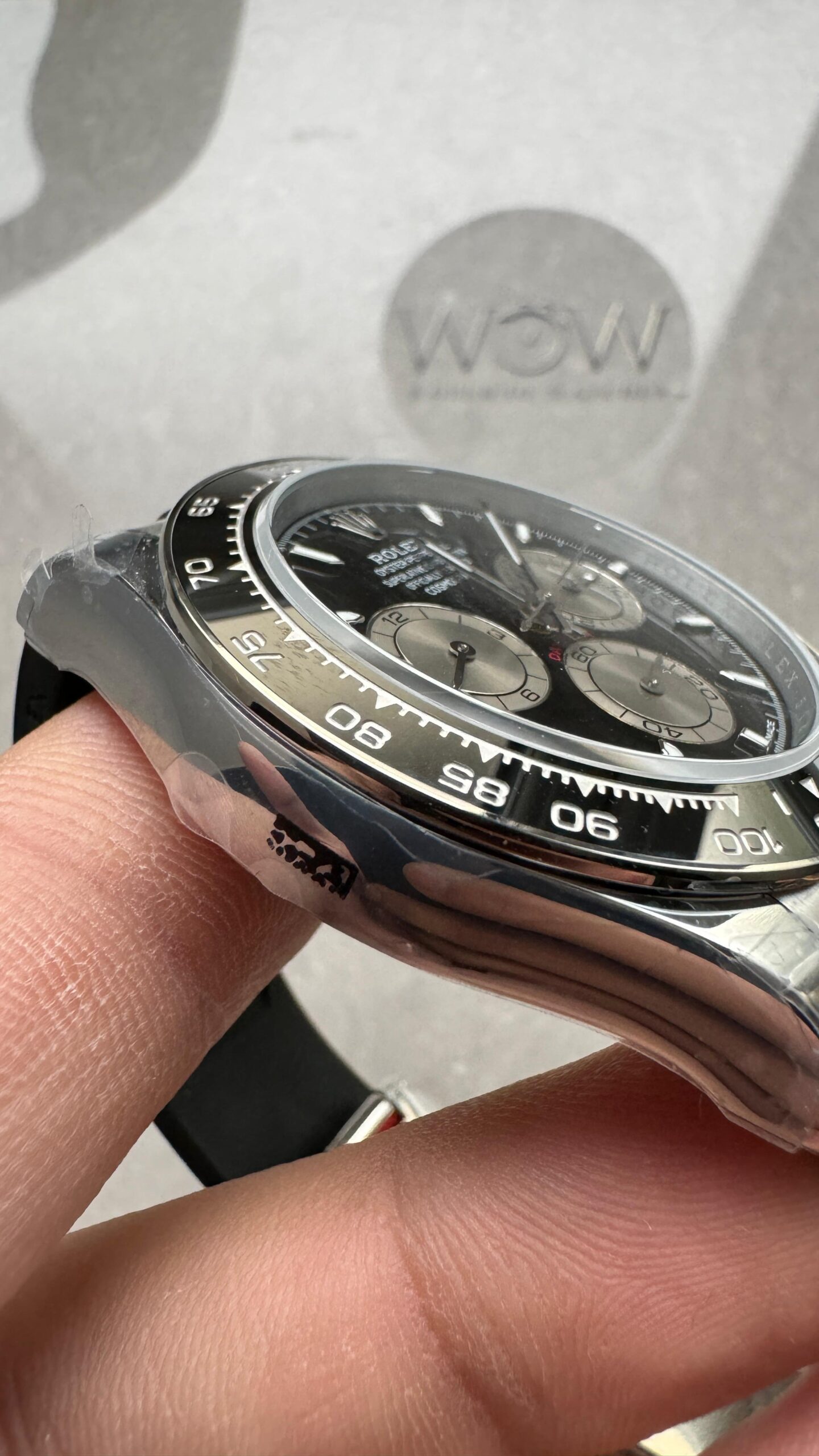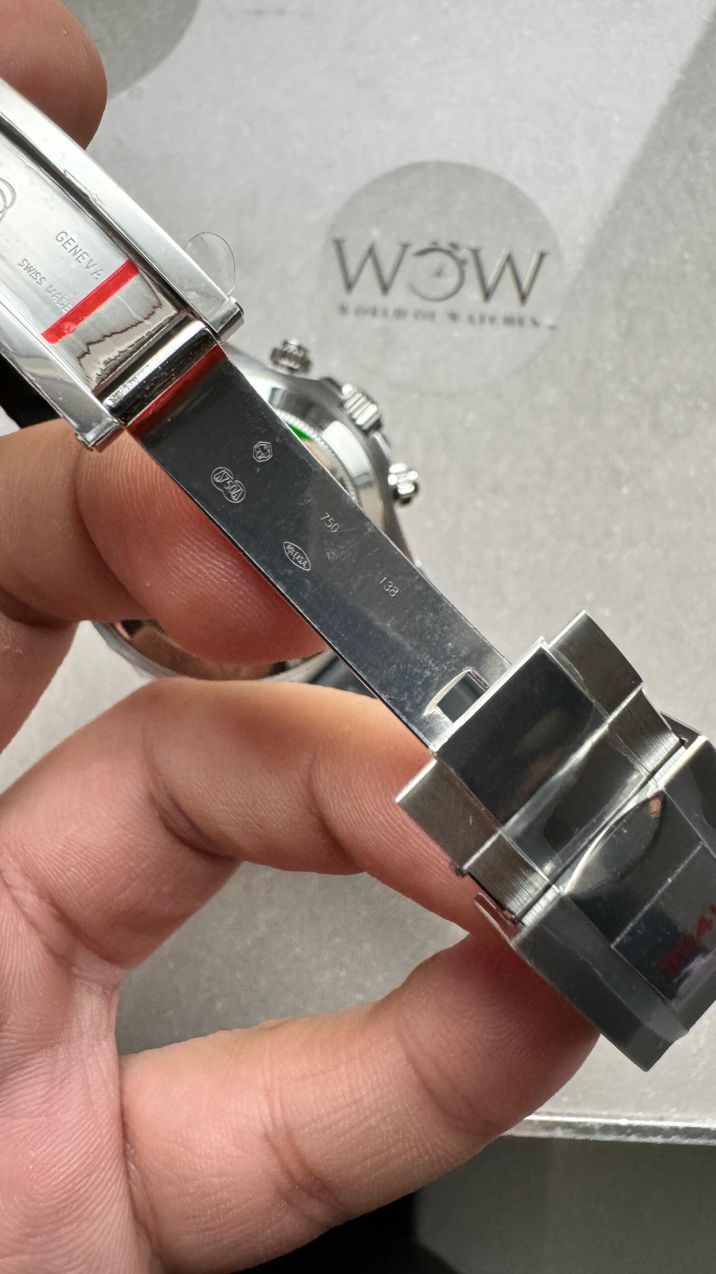 | bezel | Black ceramic tachymeter bezel with steel-wrapped |