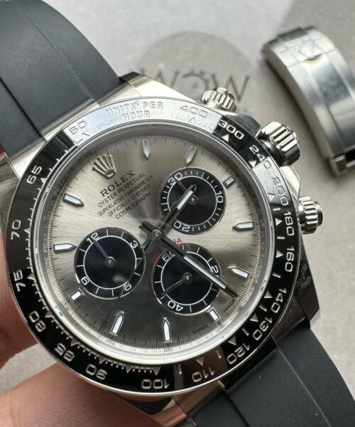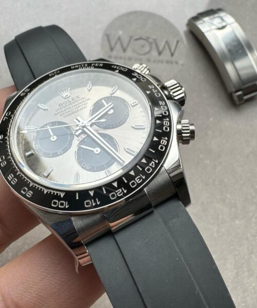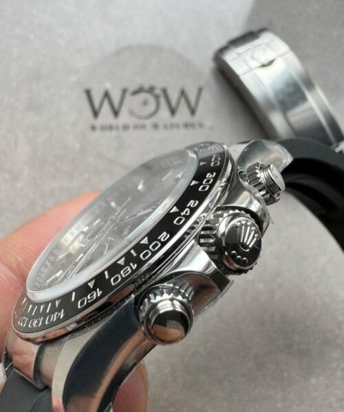 | bezel | Black ceramic tachymeter bezel, real platinum plated correct markers, same shape and depth as genuine bezel |