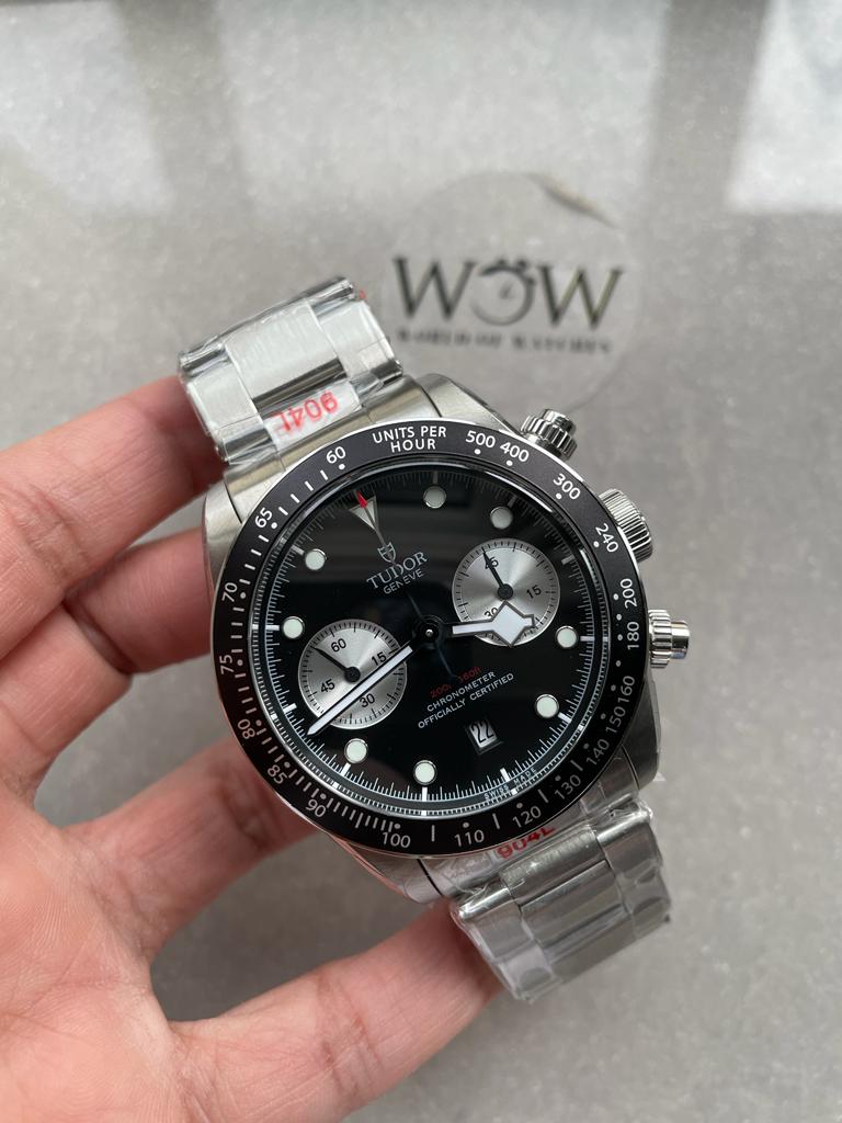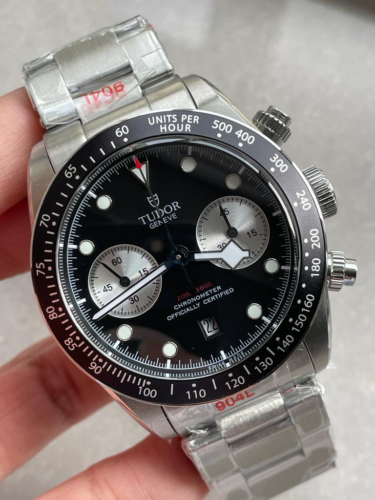 Black Bay Chrono SS TWS 1:1 Reverse Panda Best Edition Black Dial on SS Bracelet A7750