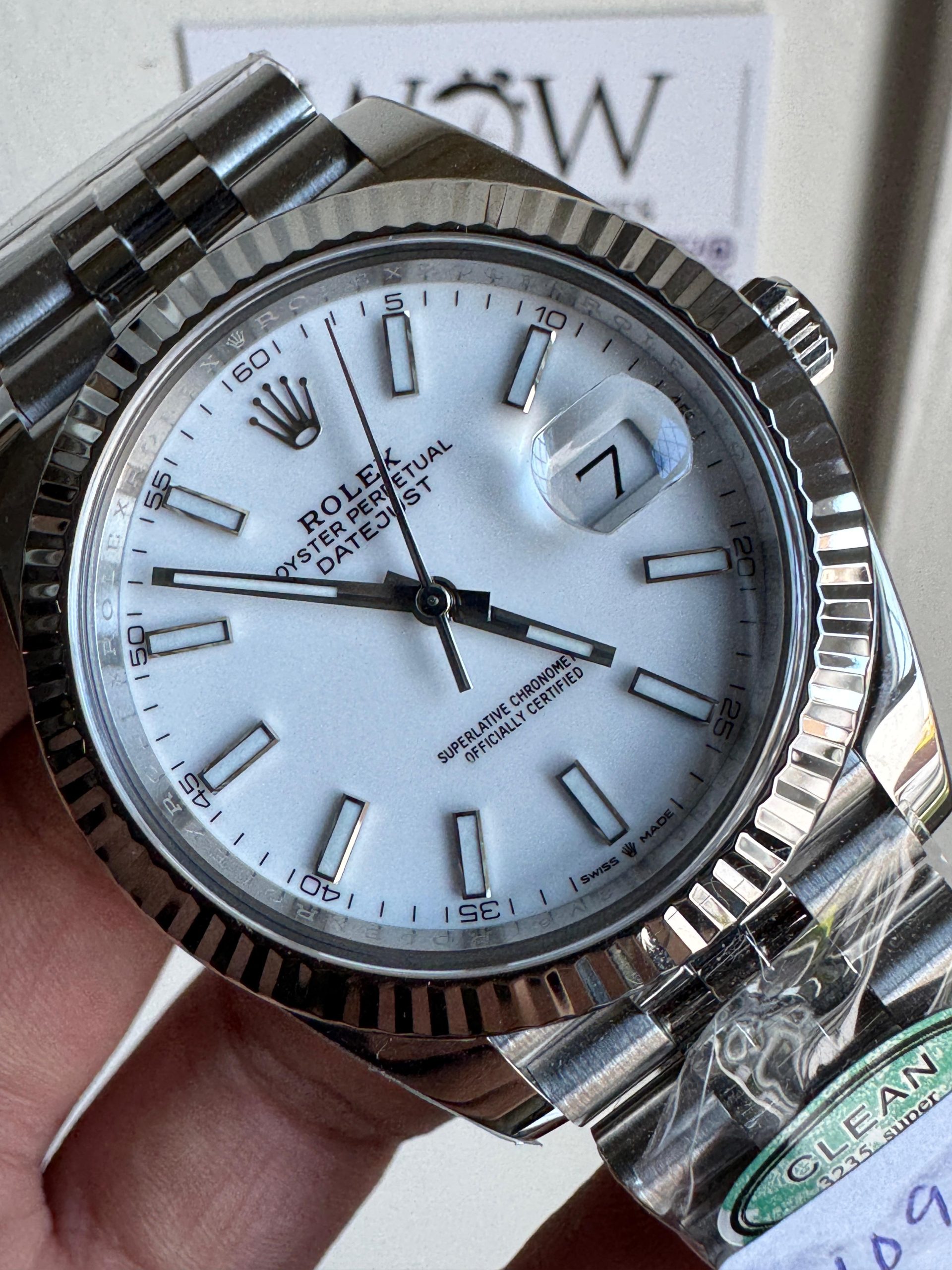 Clean Datejust 41 904L SS Fluted Bezel White Dial on SS Jubilee Bracelet Clean VR3235
