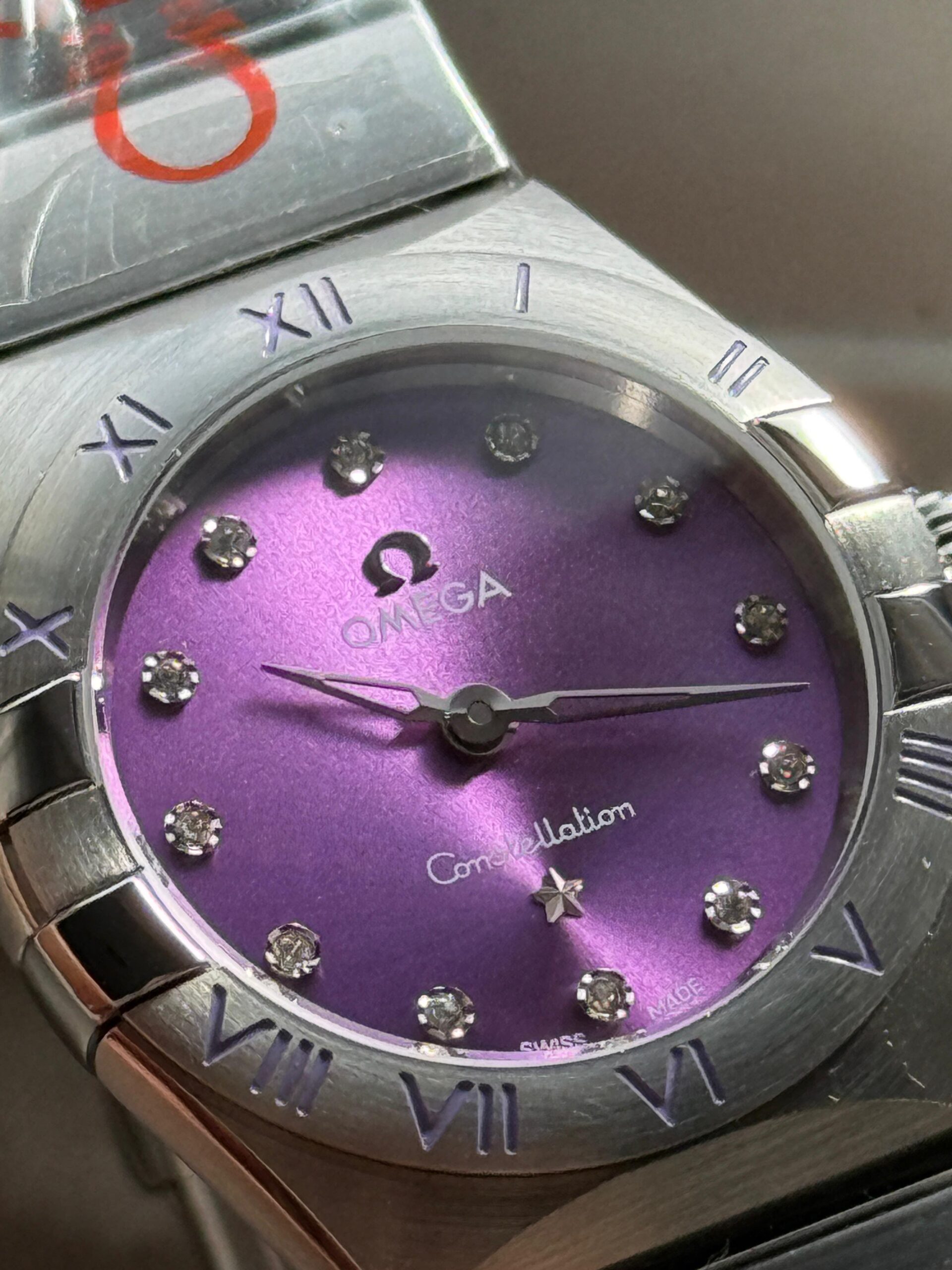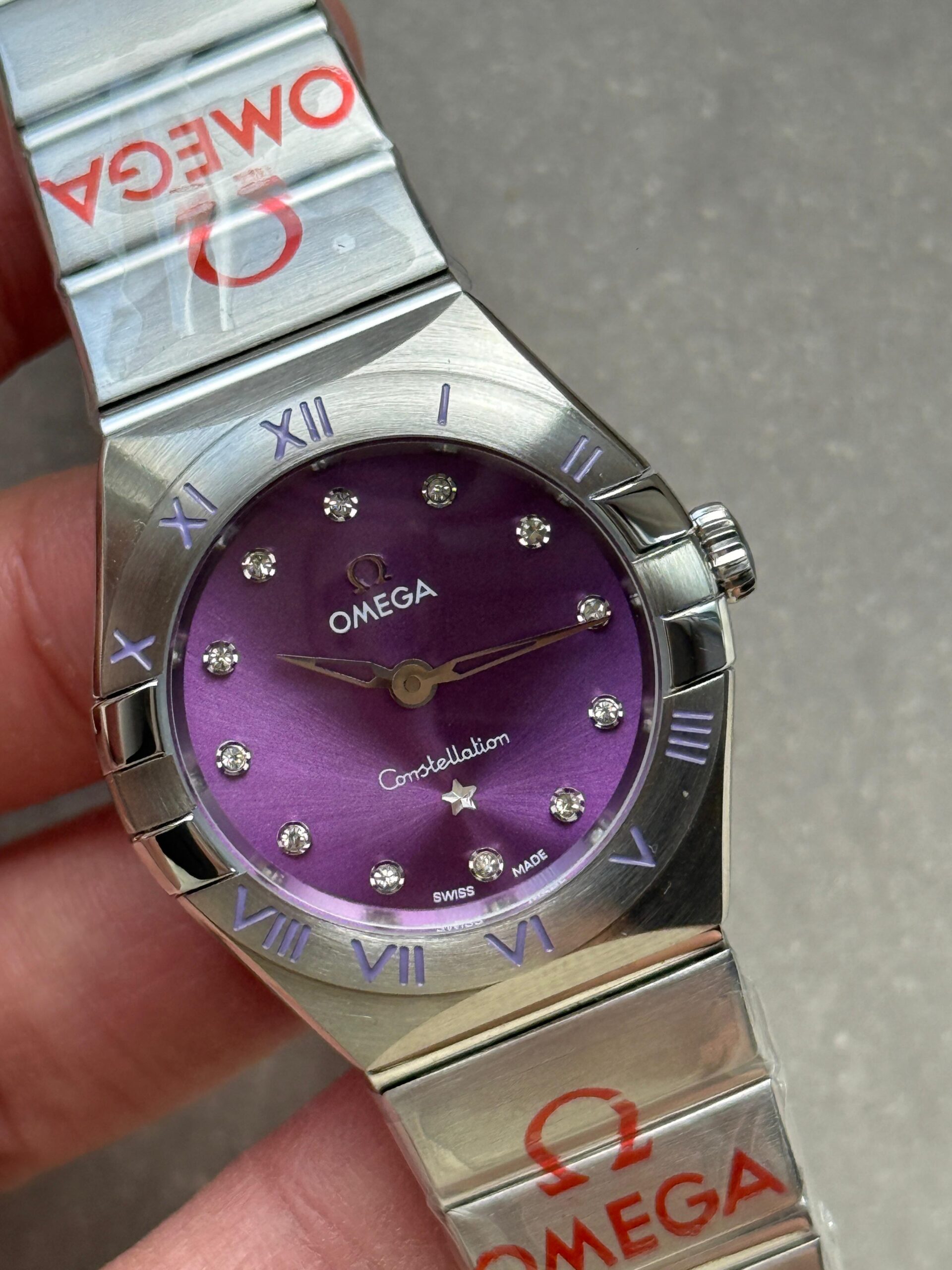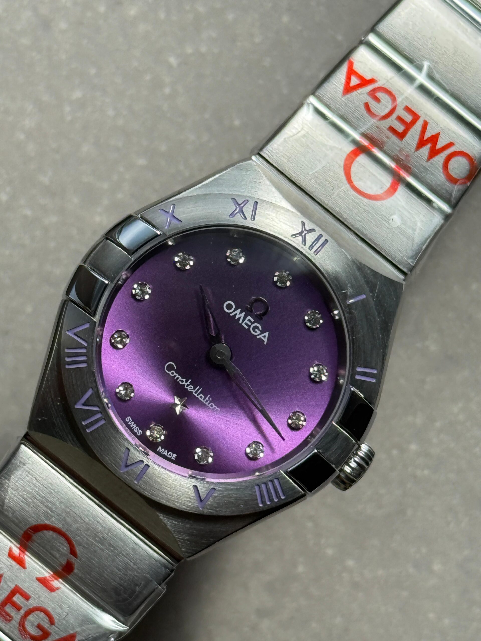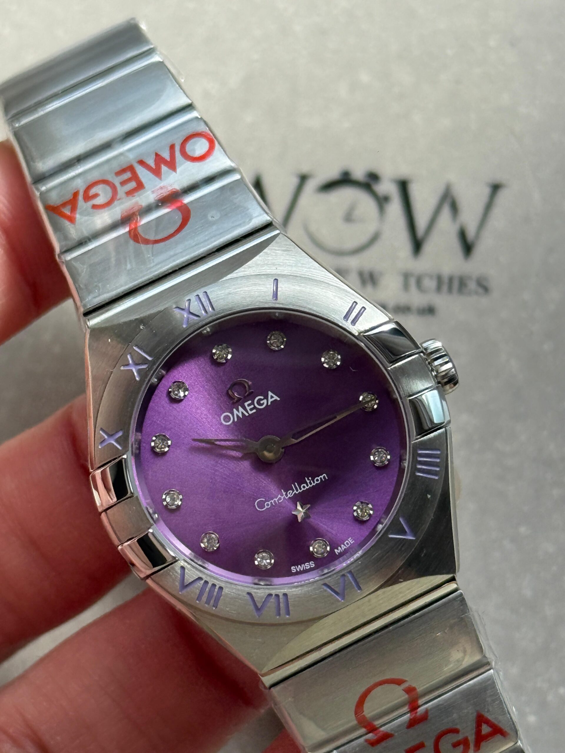 Constellation Ladies 28mm SS Purple Dial Diamonds Markers on SS Bracelet ETA Quartz