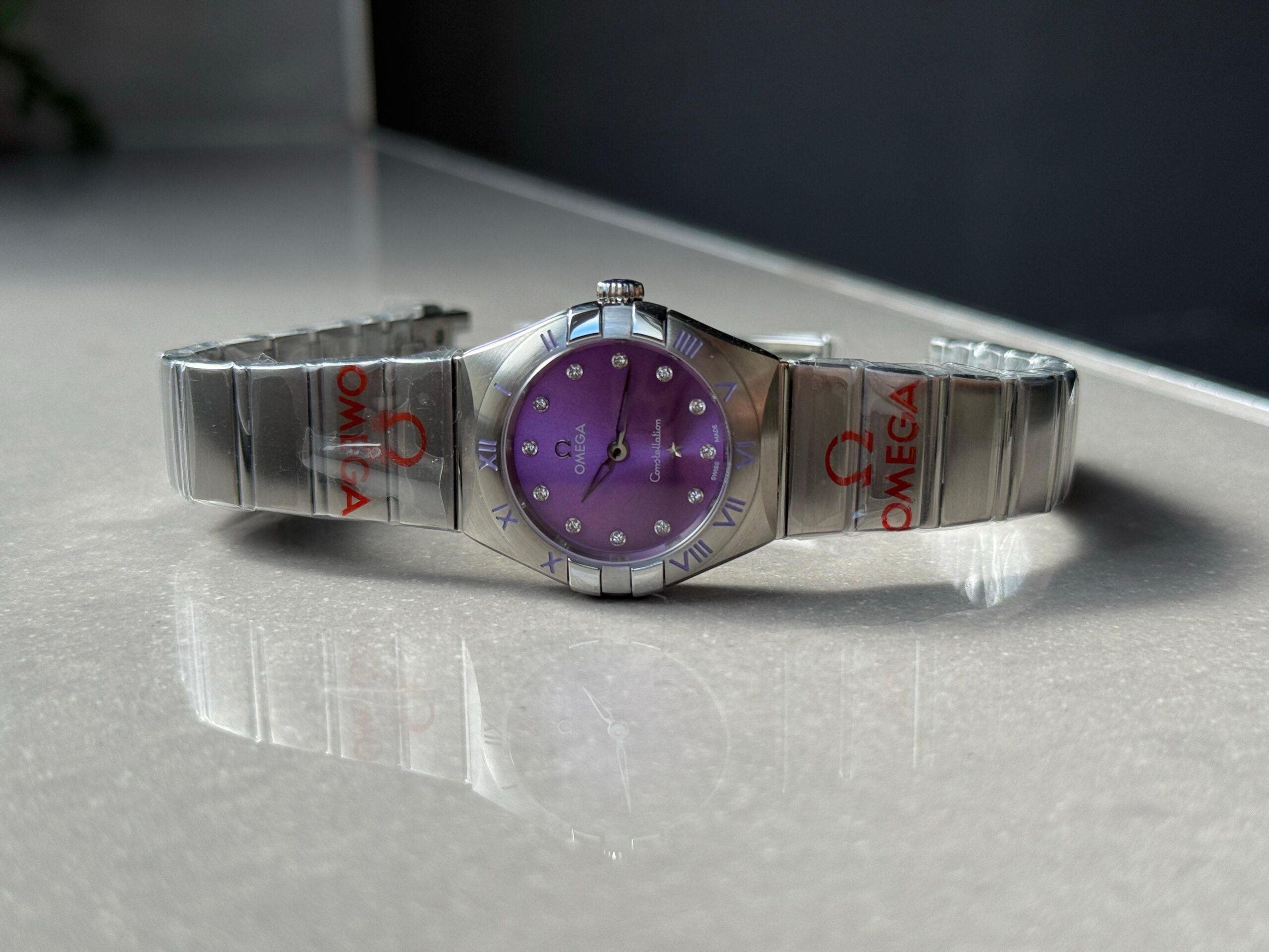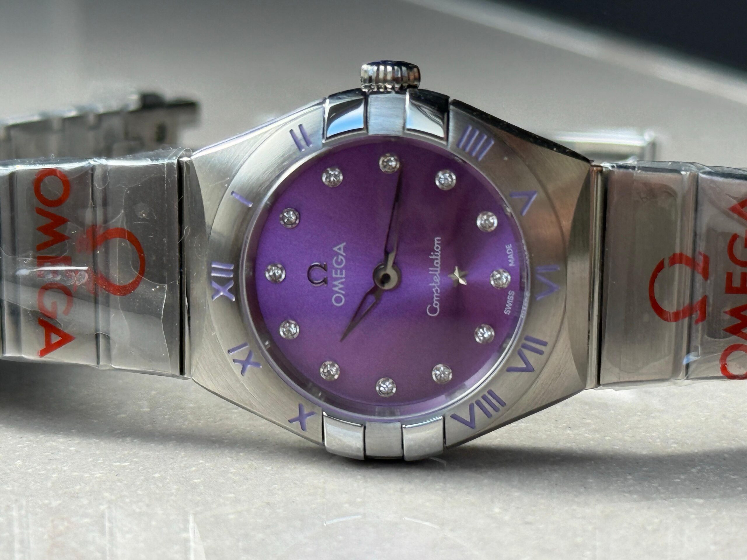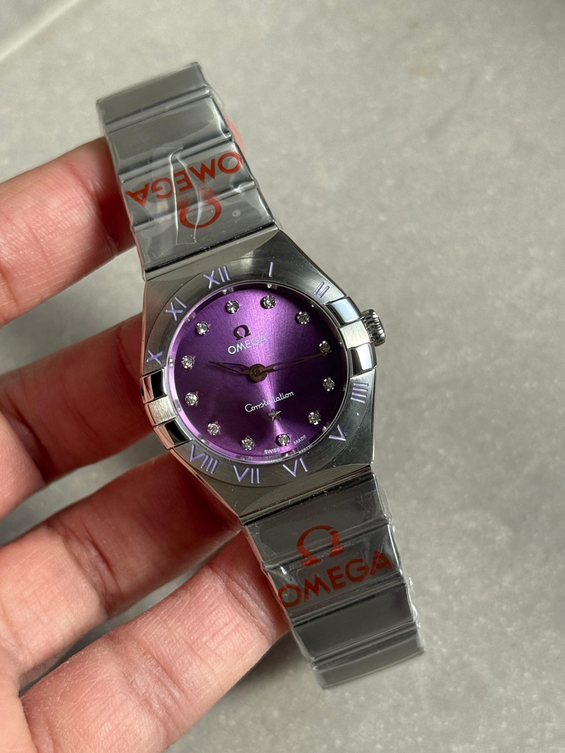 Be the first to review “Constellation Ladies 28mm SS Purple Dial Diamonds Markers on SS Bracelet ETA Quartz” Cancel reply
