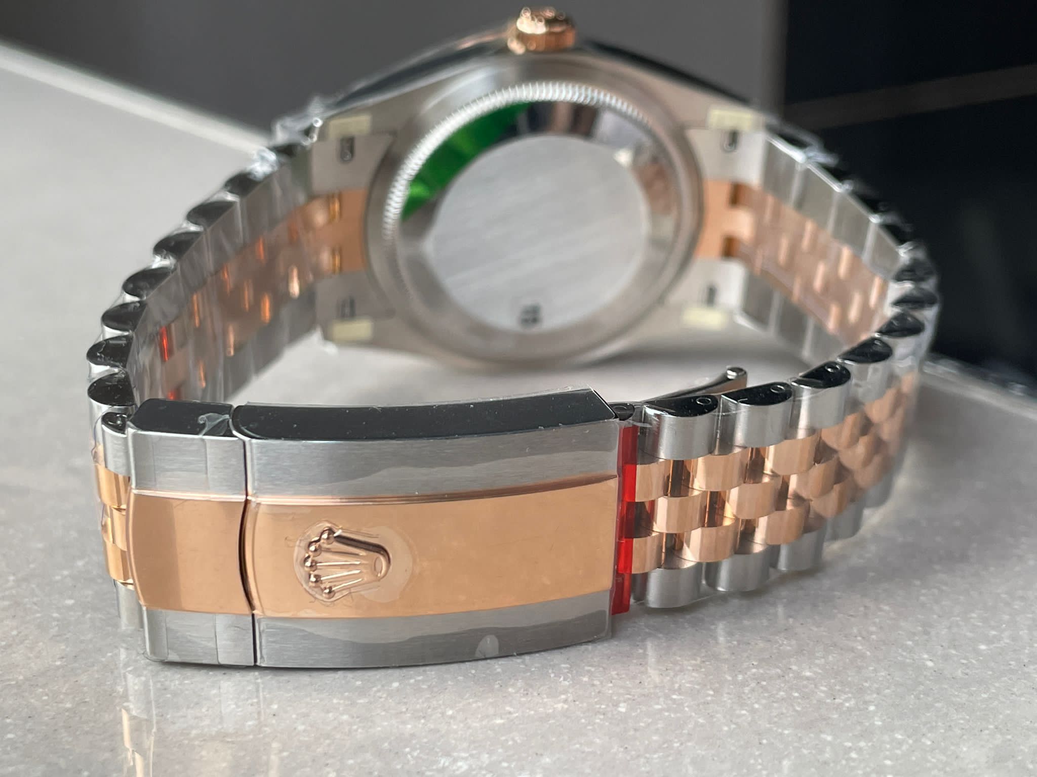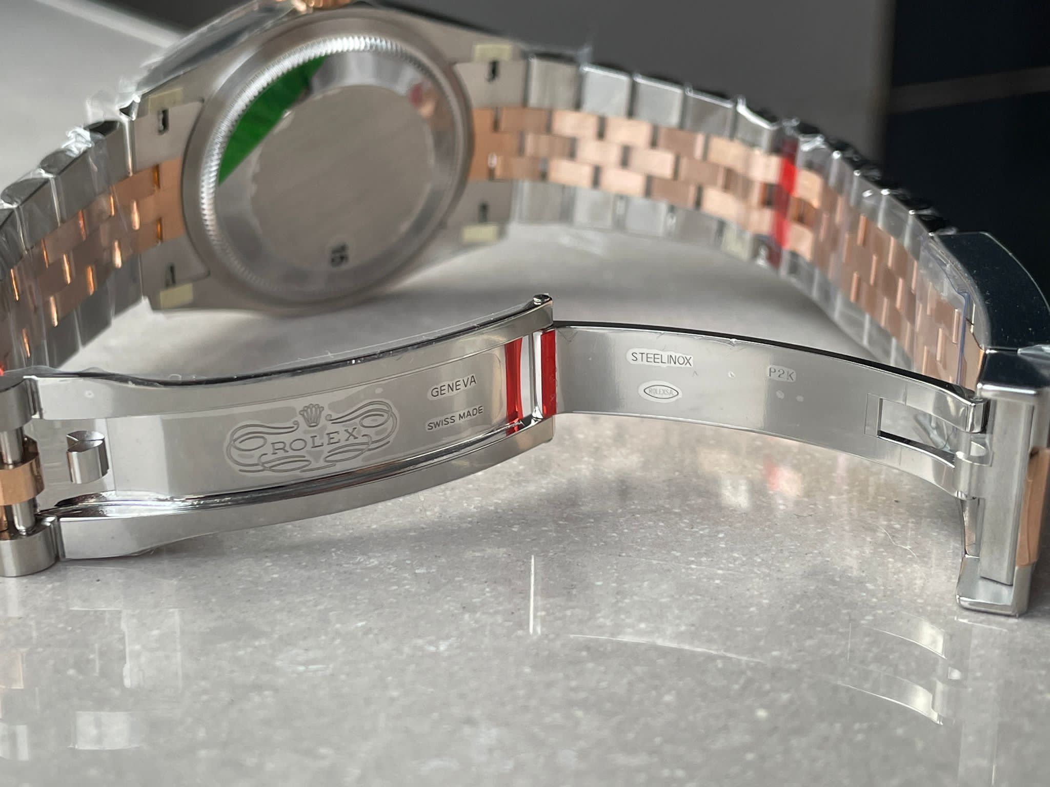 | Strap | 904L stainless steel bracelet with 18k rose gold plated middle links |