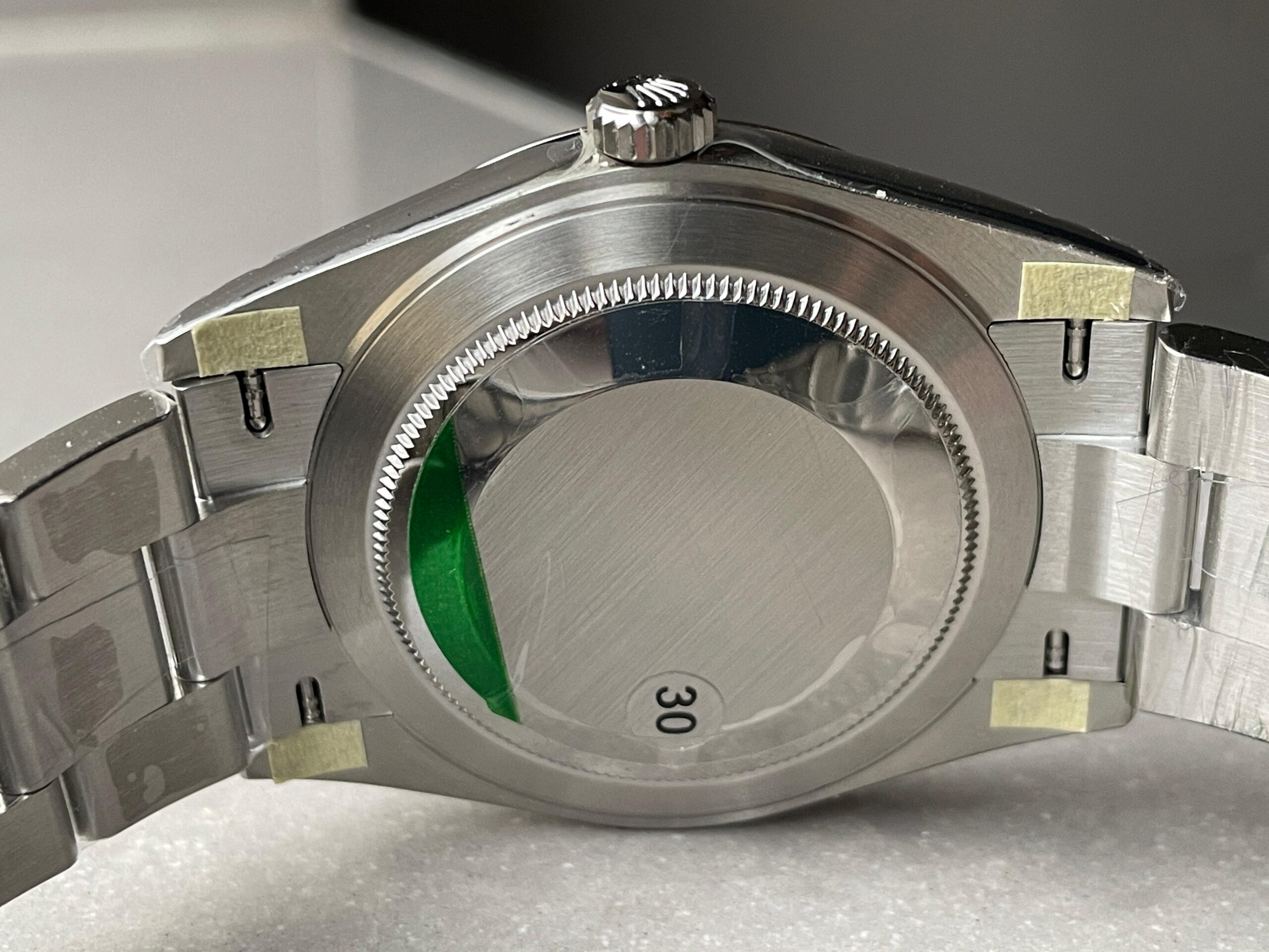 | Case | 1:1 high quality 904L stainless steel, screw-in back and crown, deep and double line engraved rehaut, brighter and more accurate engravings, random serial number engraved at 6:00 of the rehaut. Different random serials |