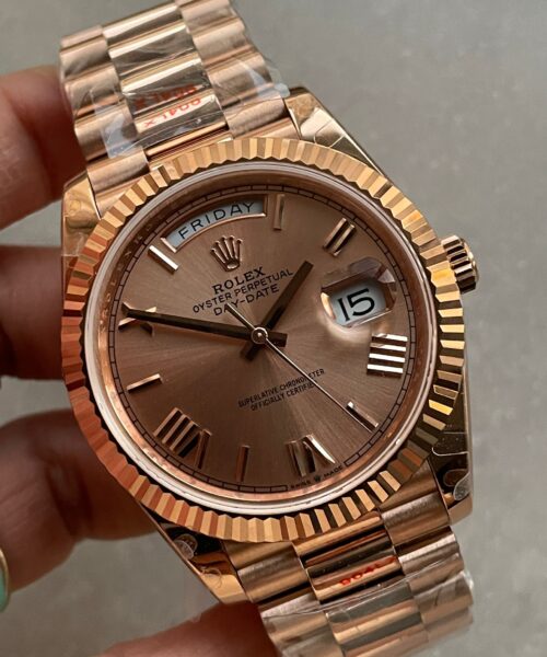 Be the first to review “Day-Date 40mm 228235 904L RG Fluted Bezel Rose Gold Dial on RG President Bracelet with Tungsten steel for extra weight GMF” Cancel reply