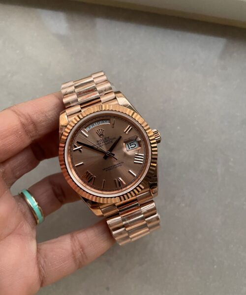 Be the first to review “Day-Date 40mm 228235 904L RG Fluted Bezel Rose Gold Dial on RG President Bracelet with Tungsten steel for extra weight GMF” Cancel reply