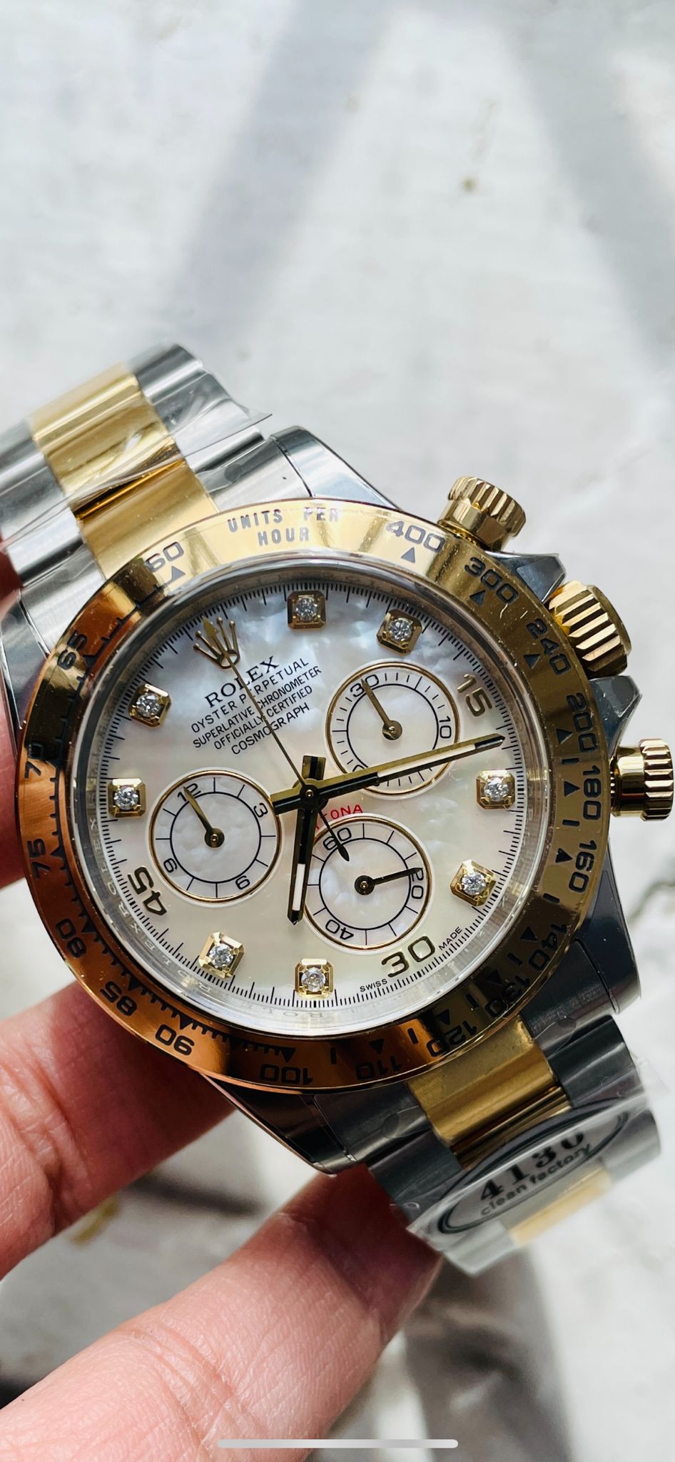 Be the first to review “Daytona 116503 Two Tone Yellow Gold Real MOP Diamond Dial Clean 1:1 Best SA4130” Cancel reply