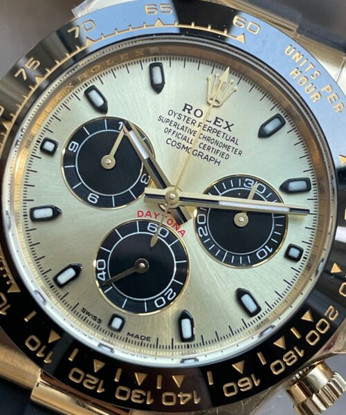 | bezel | Black ceramic tachymeter bezel, real gold plated correct markers, same shape and depth as genuine bezel |