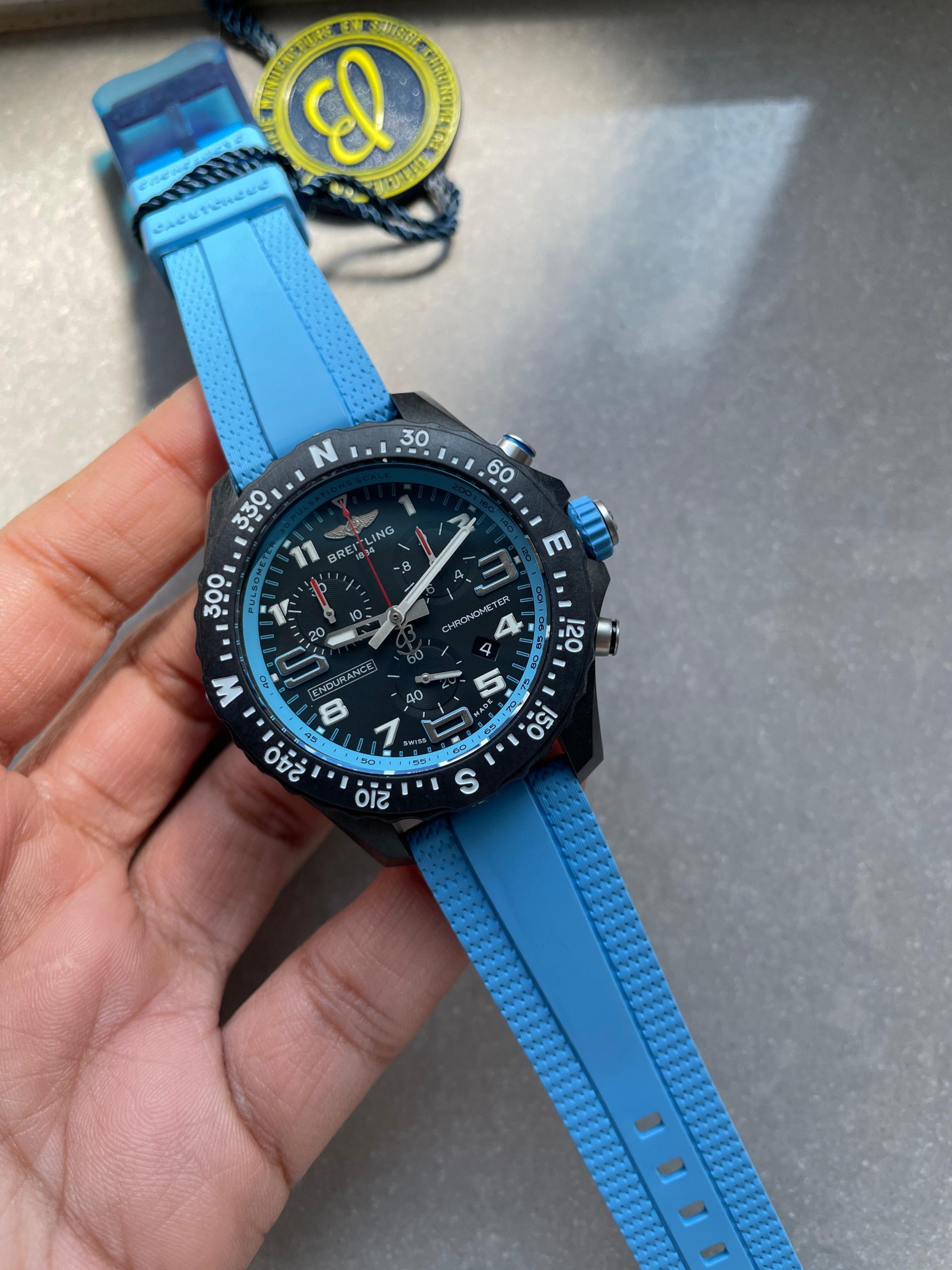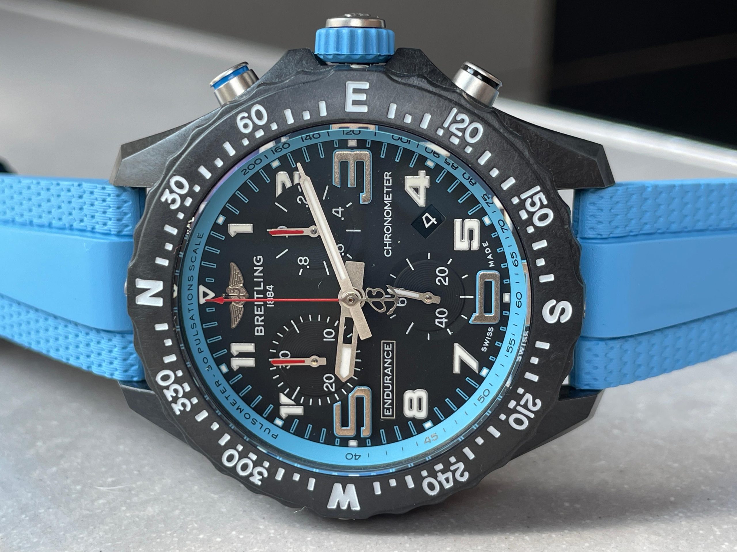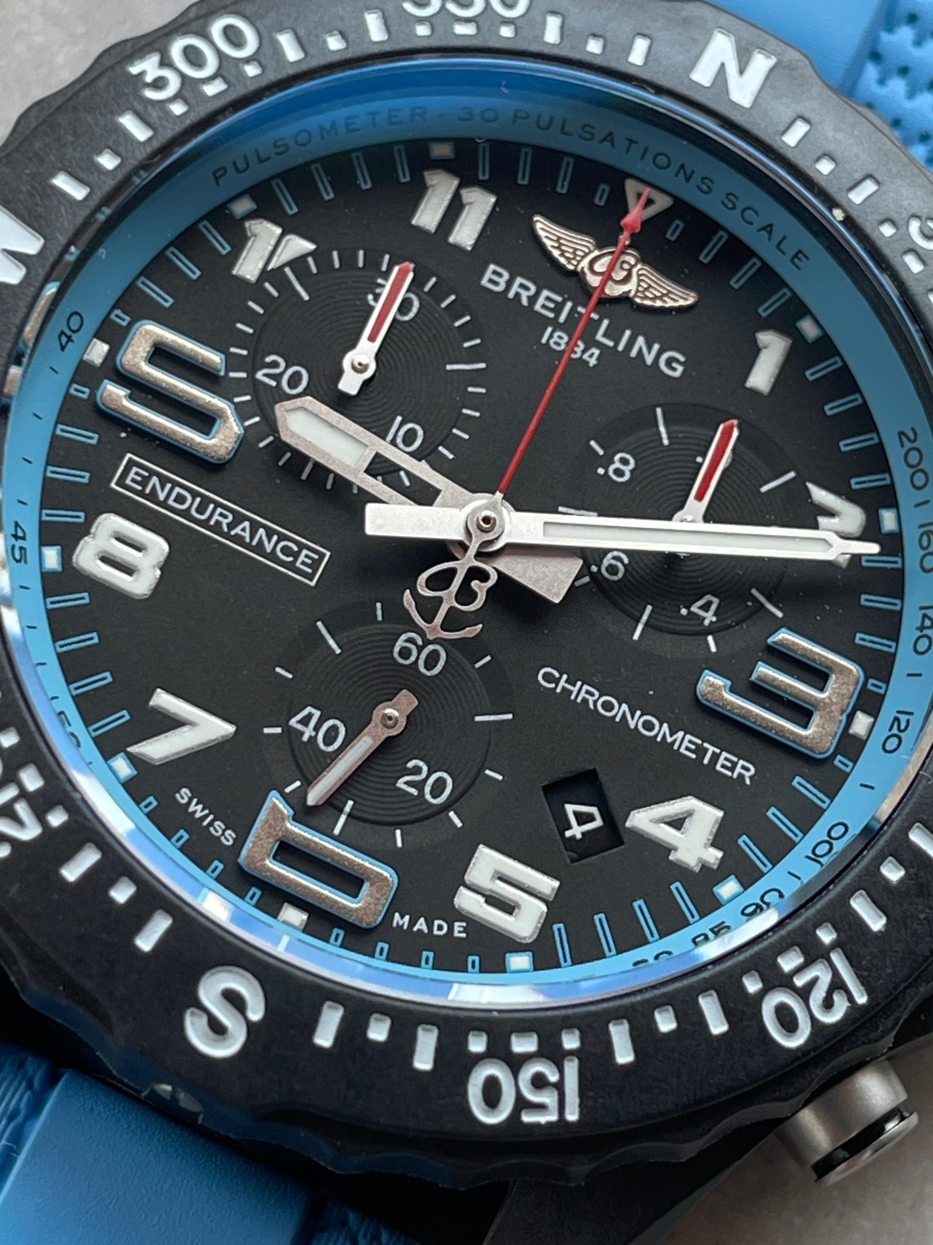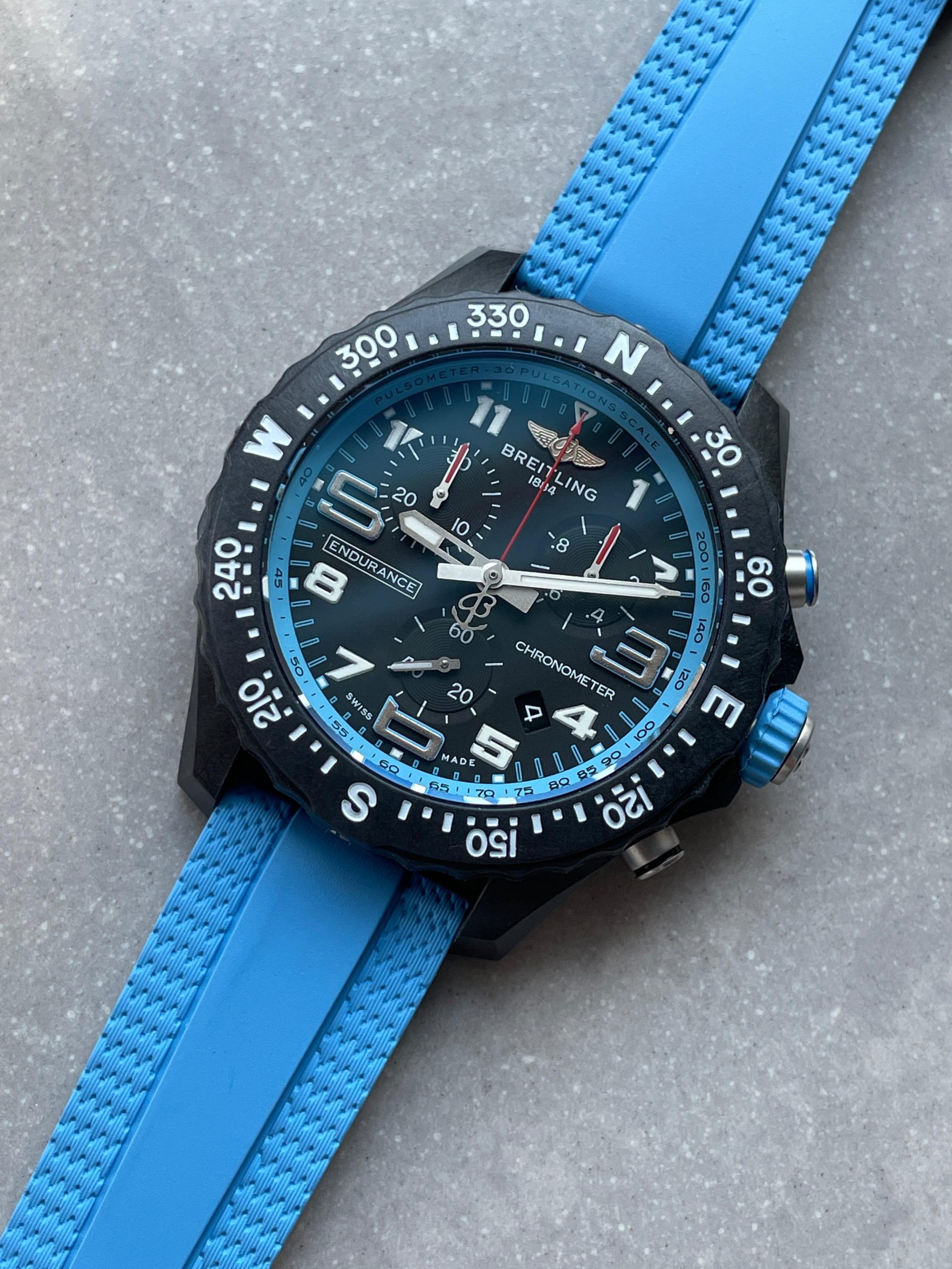 Endurance pro OGF 44mm Black dial Light Blue Rubber Strap quartz movement
