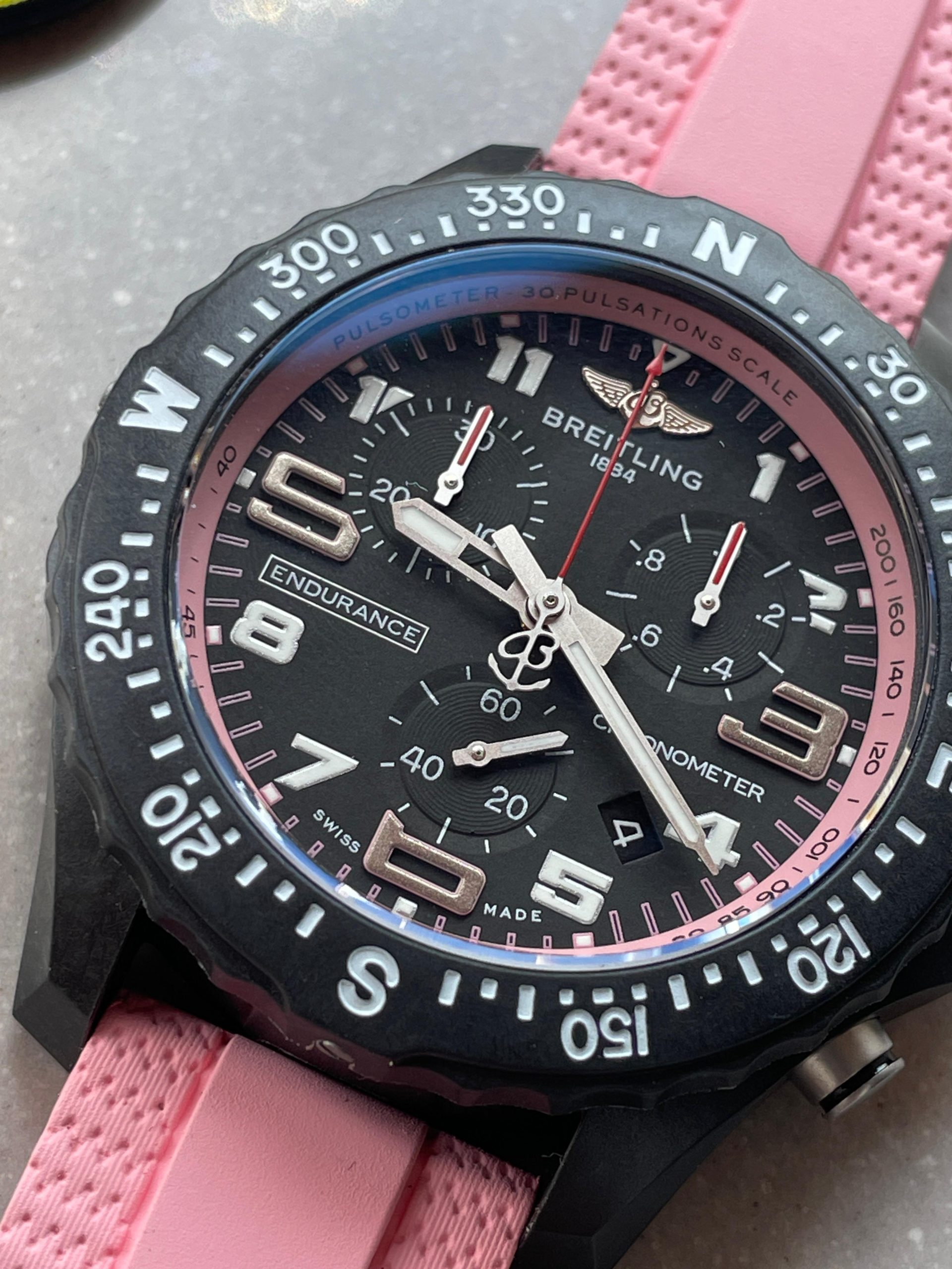 Endurance pro OGF 44mm Black dial Pink Rubber Strap quartz movement