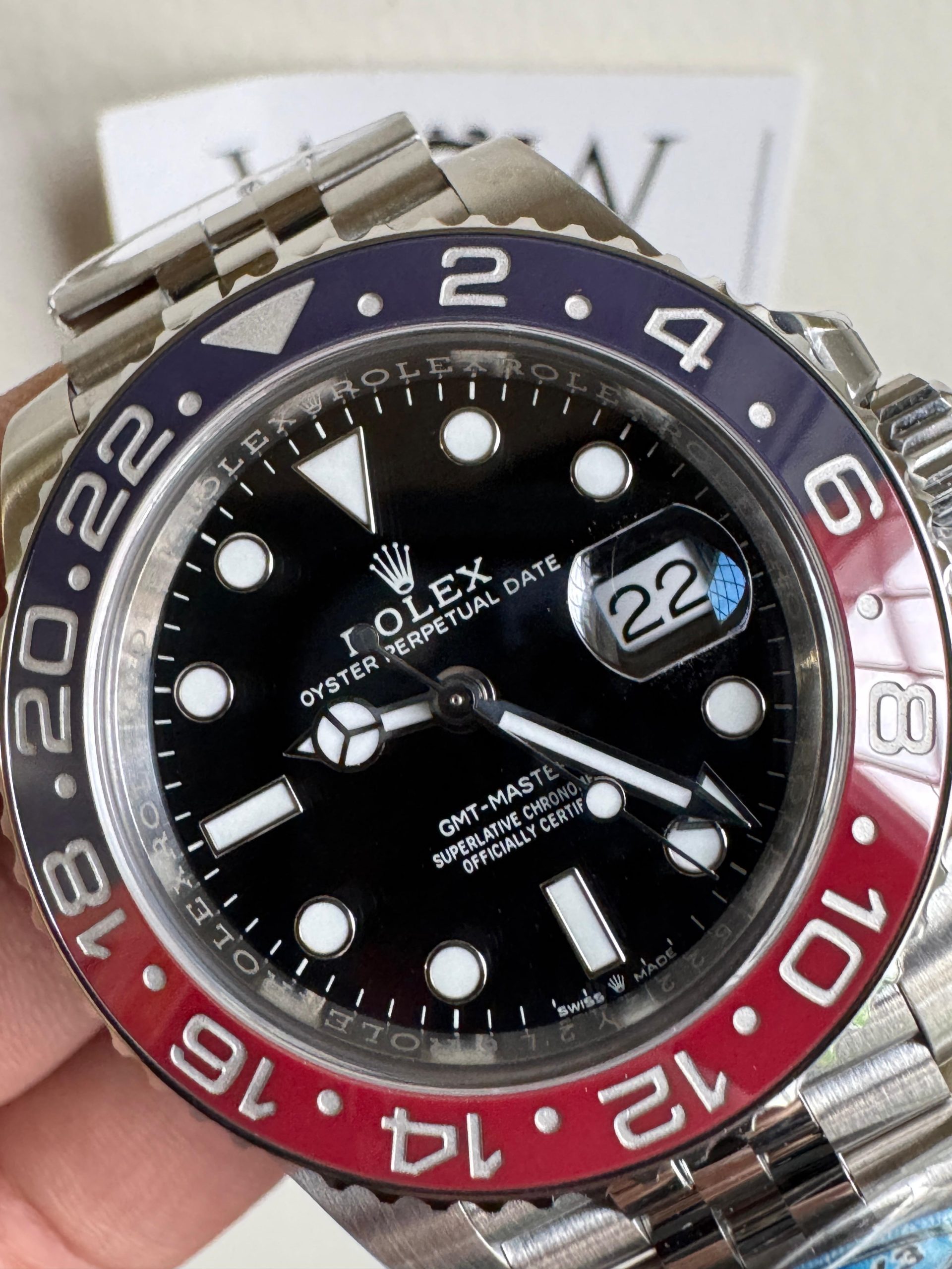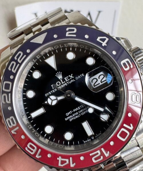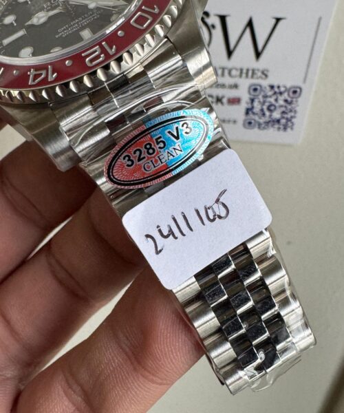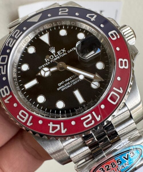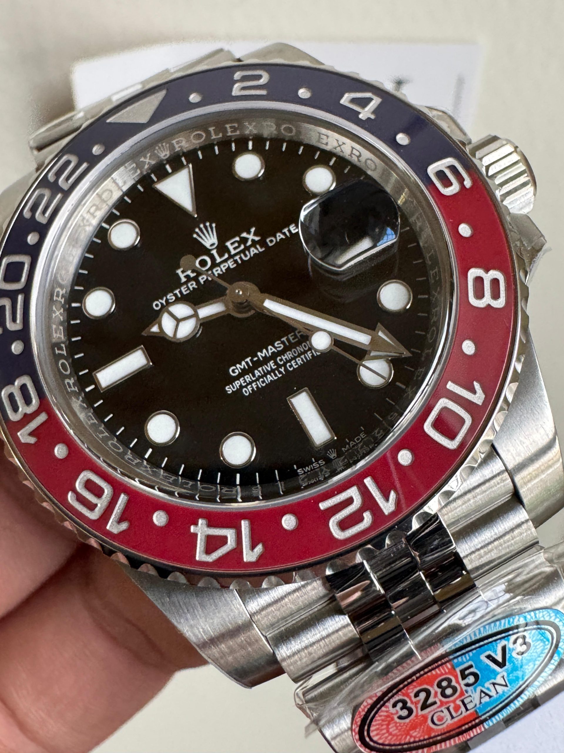 | movement | Asian Dan Dong Super Clone 3285 Automatic GMT movement with decorated bridges & rotor with correct hand stack, 70+ hours power reserve |