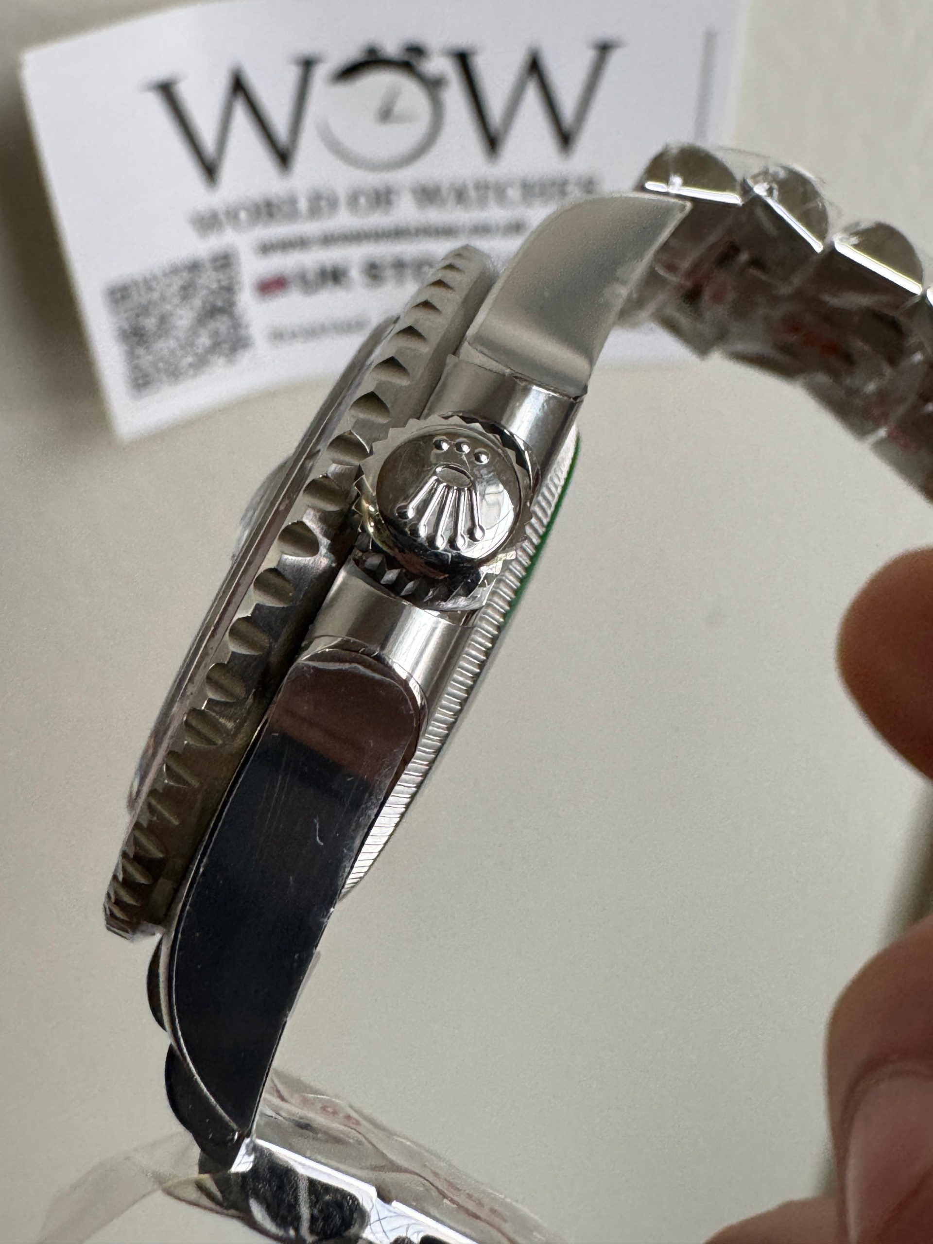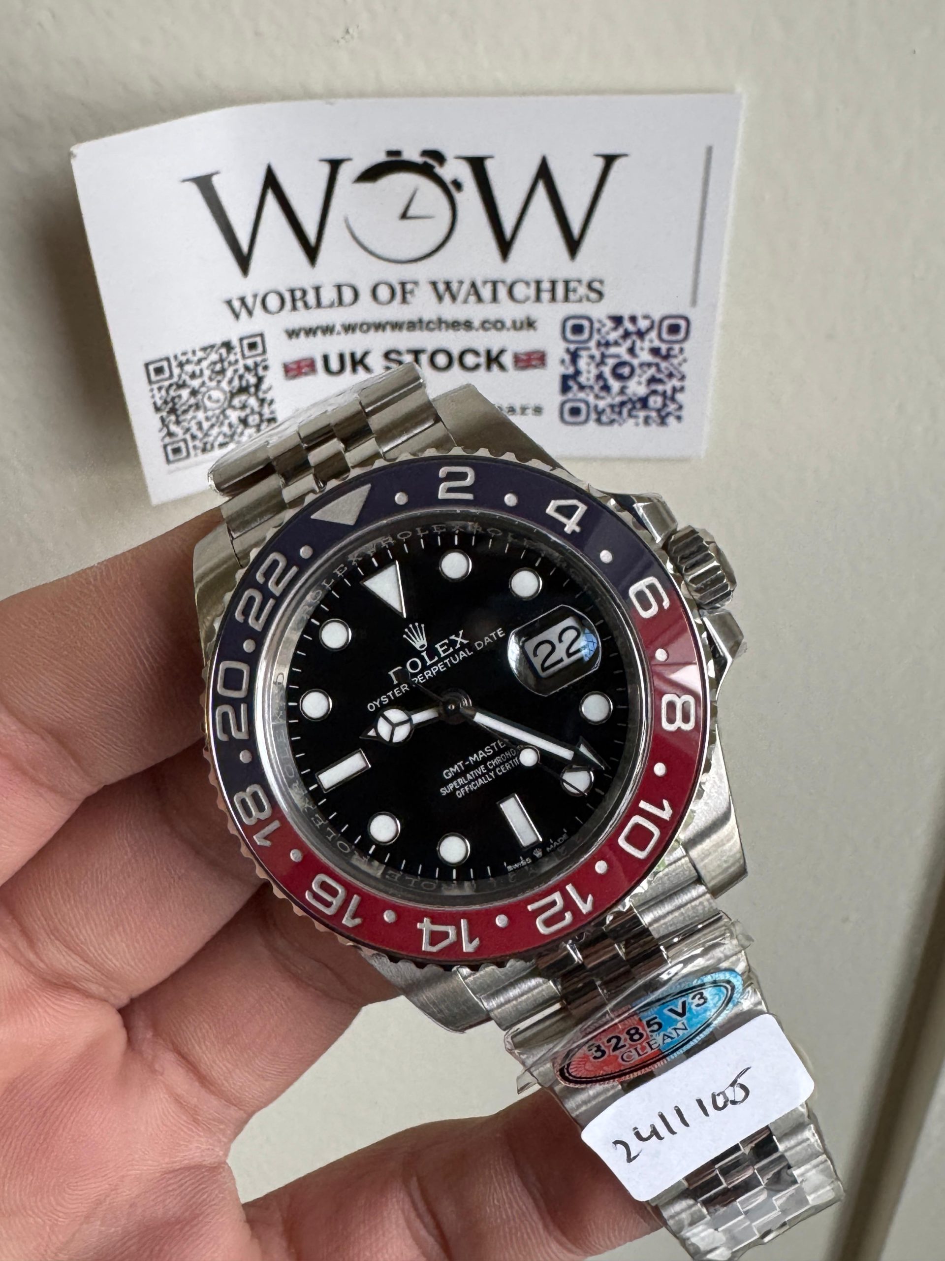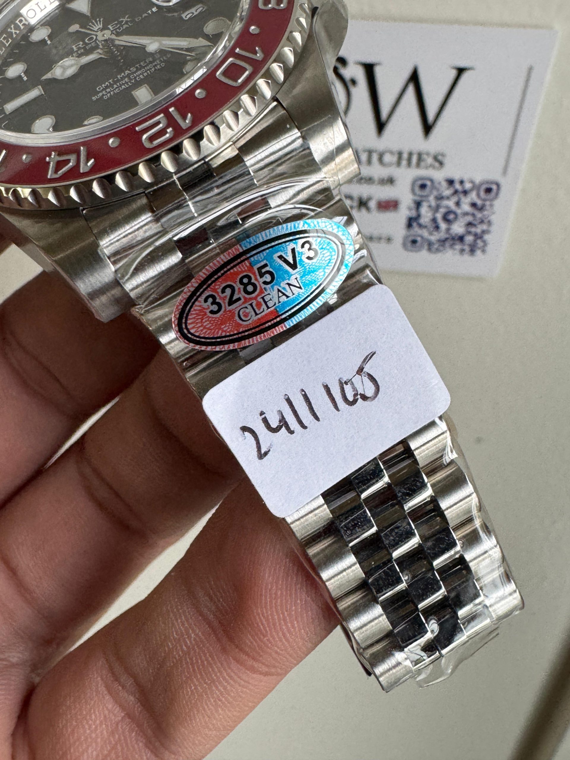 | movement | Asian Dan Dong Super Clone 3285 Automatic GMT movement with decorated bridges & rotor with correct hand stack, 70+ hours power reserve |