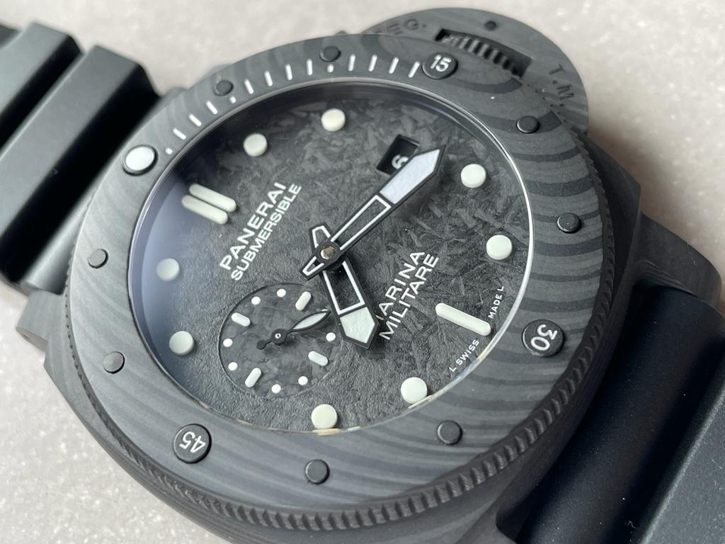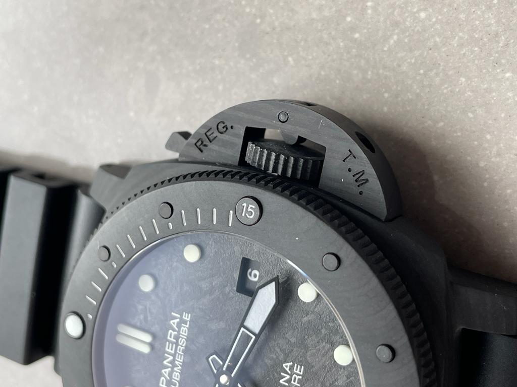 | case | Updated real carbotech Case, Crown Guard, Bezel. Same carbotech as genuine, unique pattern on each case, same material as Panerai Carbotech. |