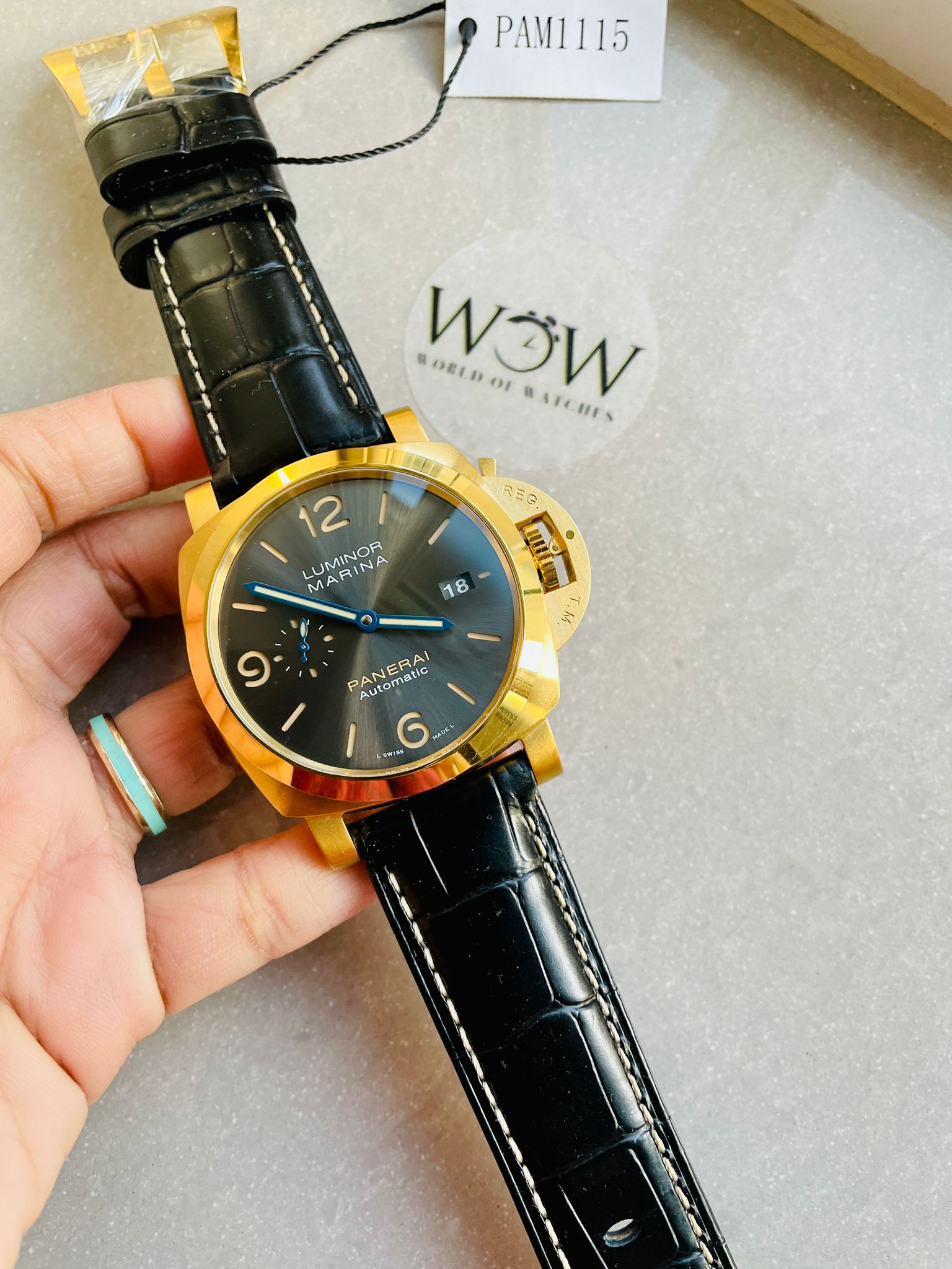 PAM1115 YG VSF 1:1 BEST EDITION BLACK DIAL ON BLACK LEATHER STRAP P.9010
