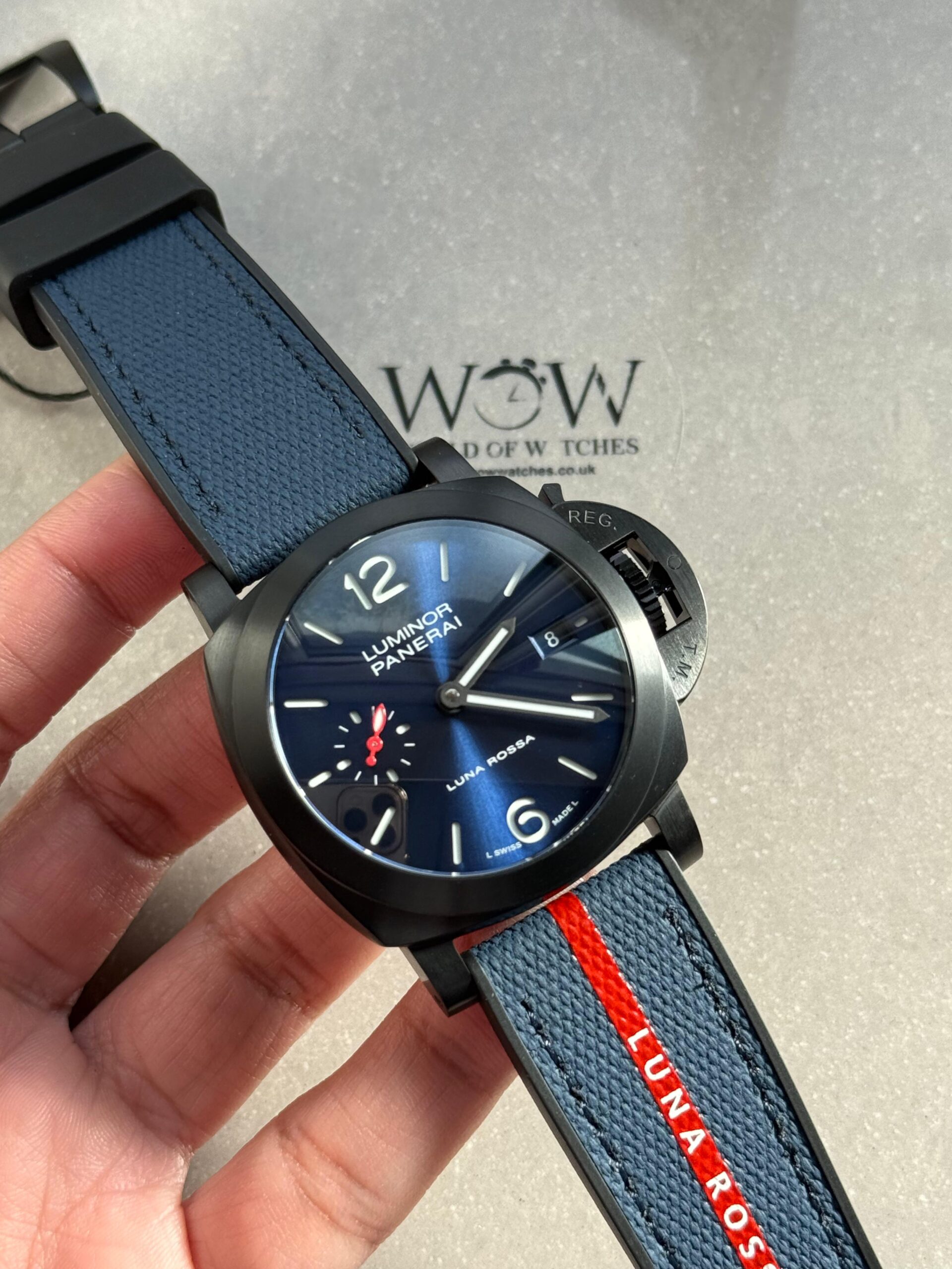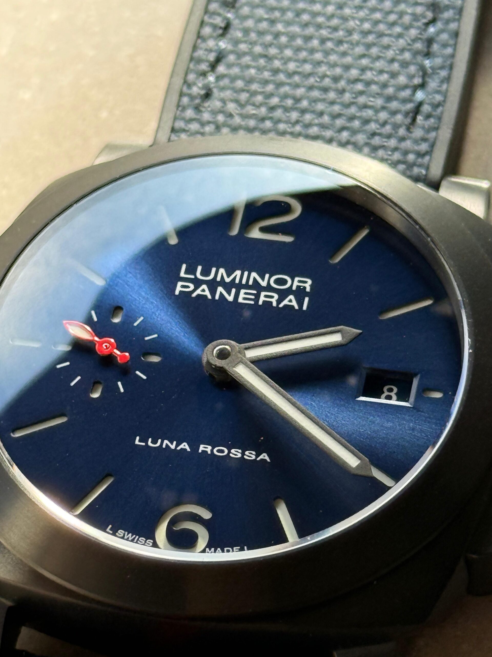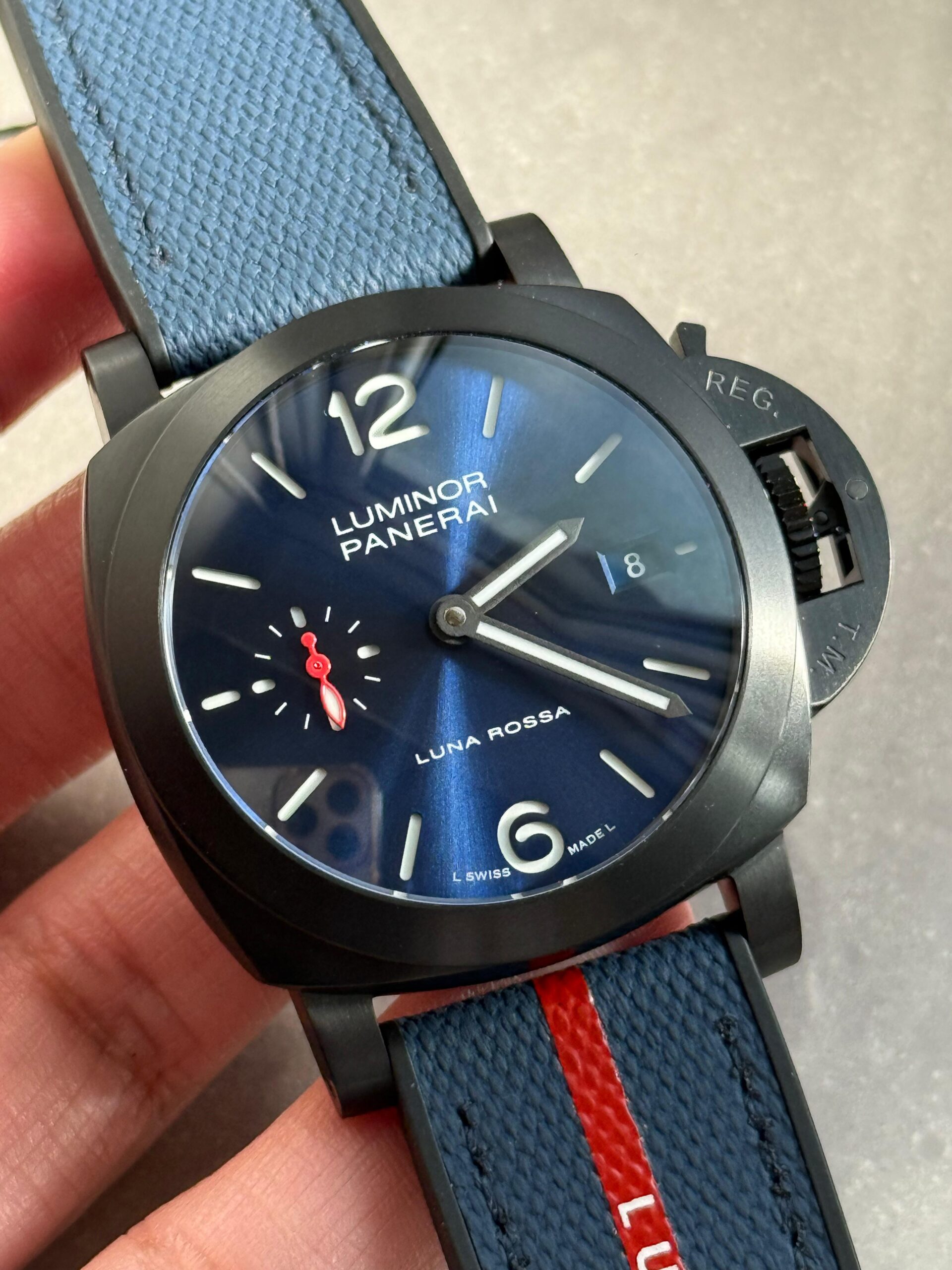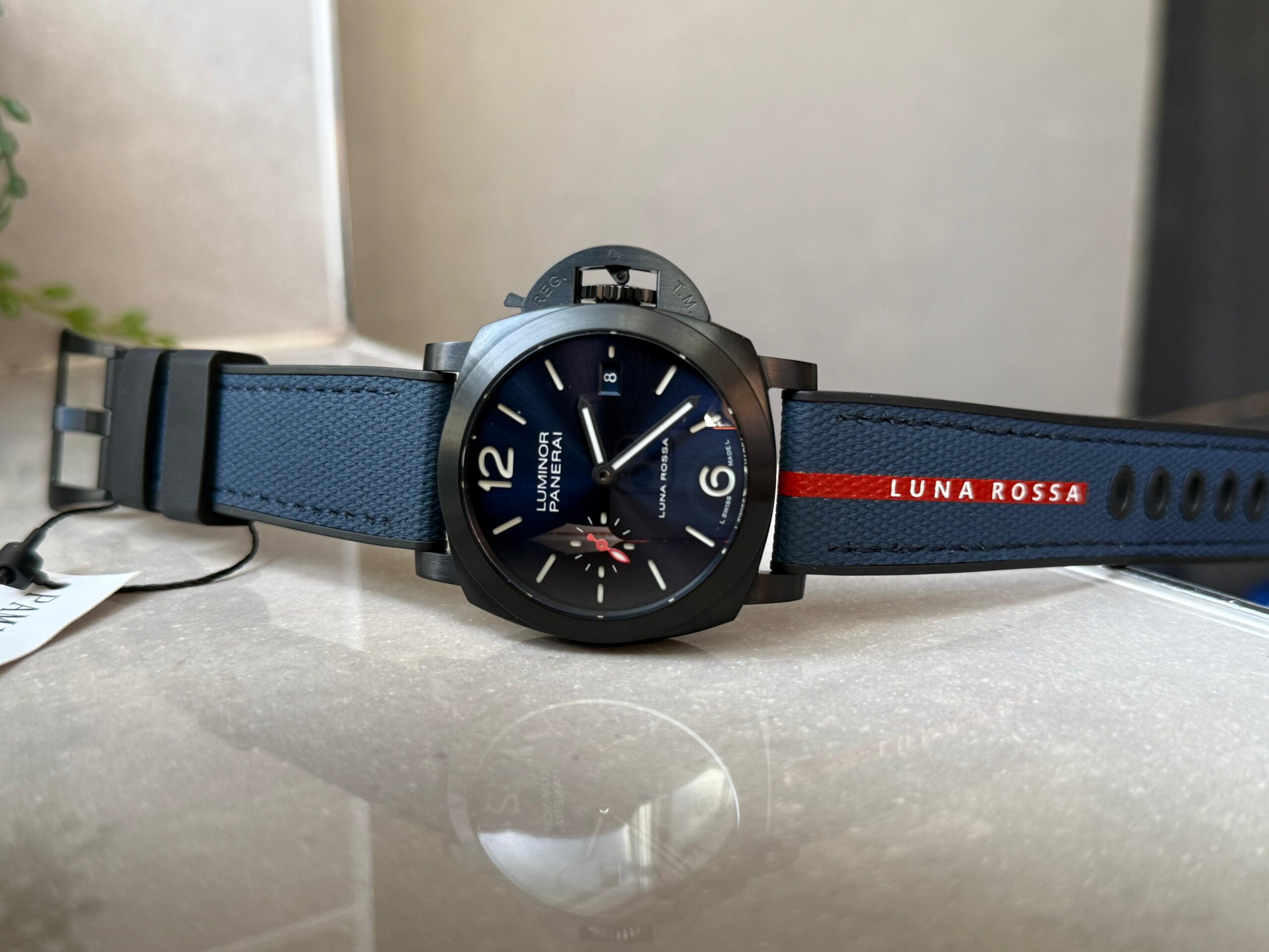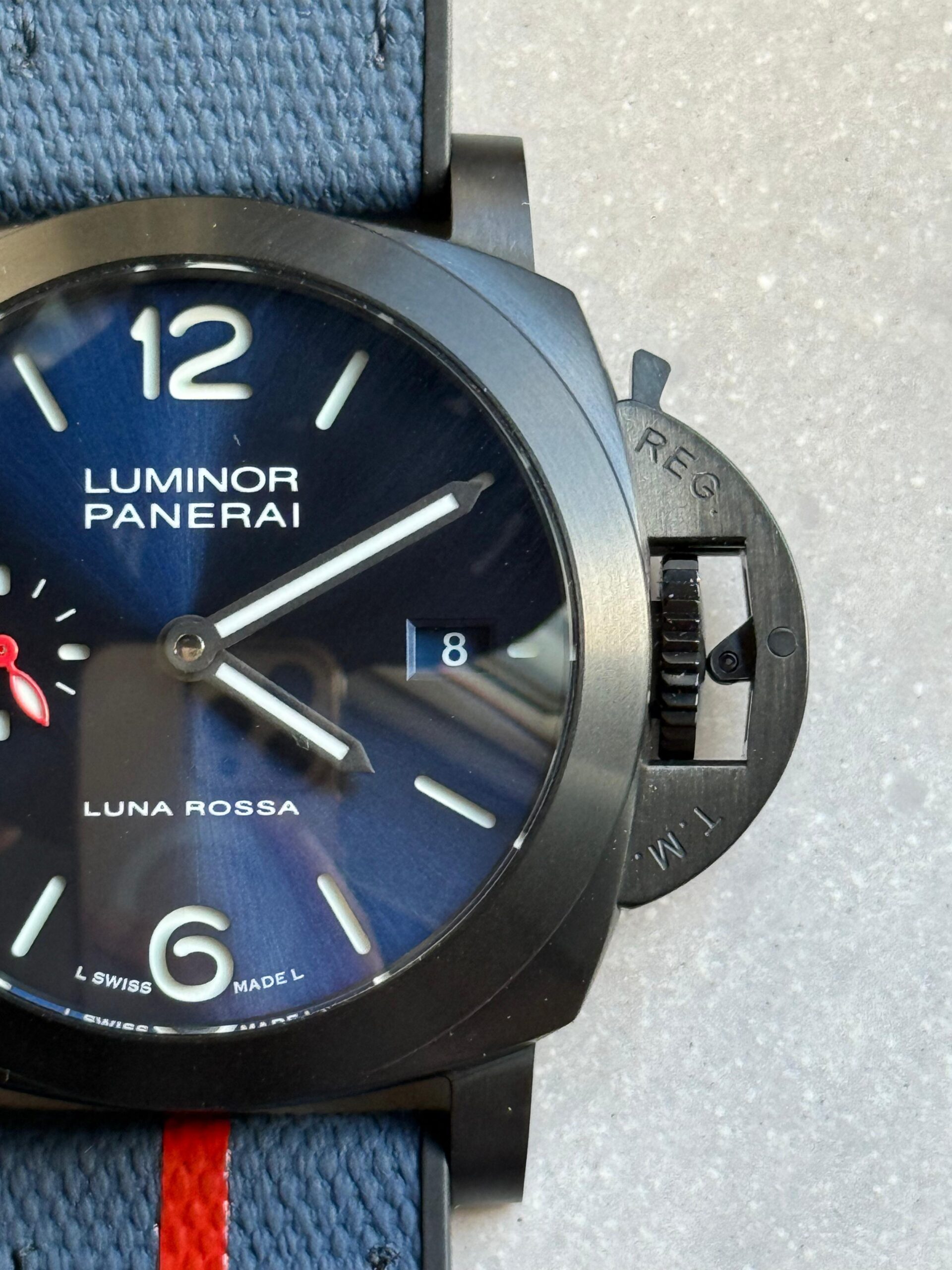 | Strap | Bi-material rubber/textile Luna Rossa dark blue Strap with Tang buckle |