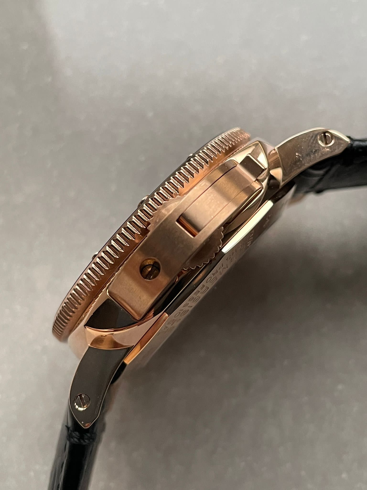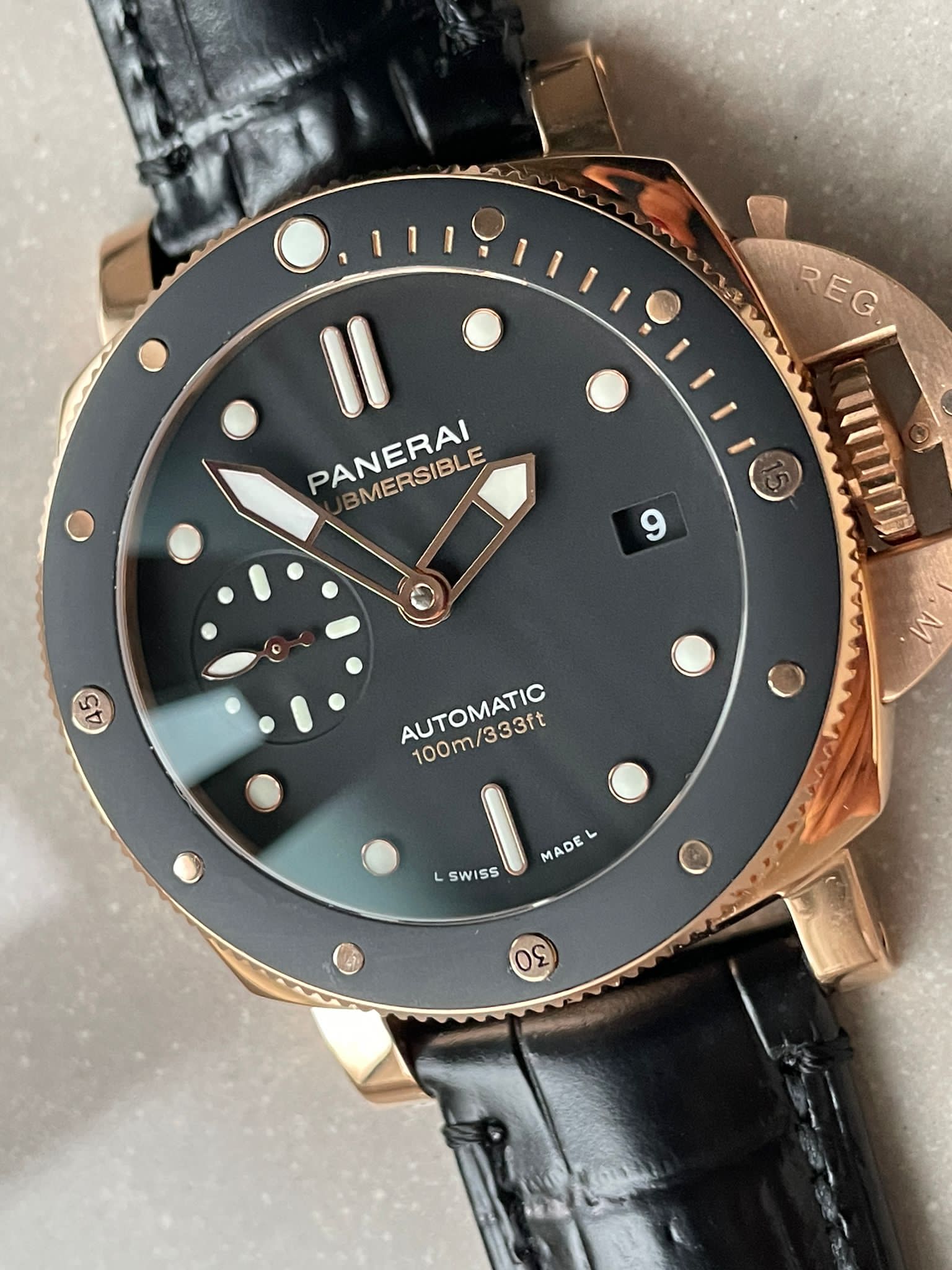 | dial | Superlumed black dial and hands (lumed with genuine Super-LumiNova); Flush Cannon Pinion as per genuine. |