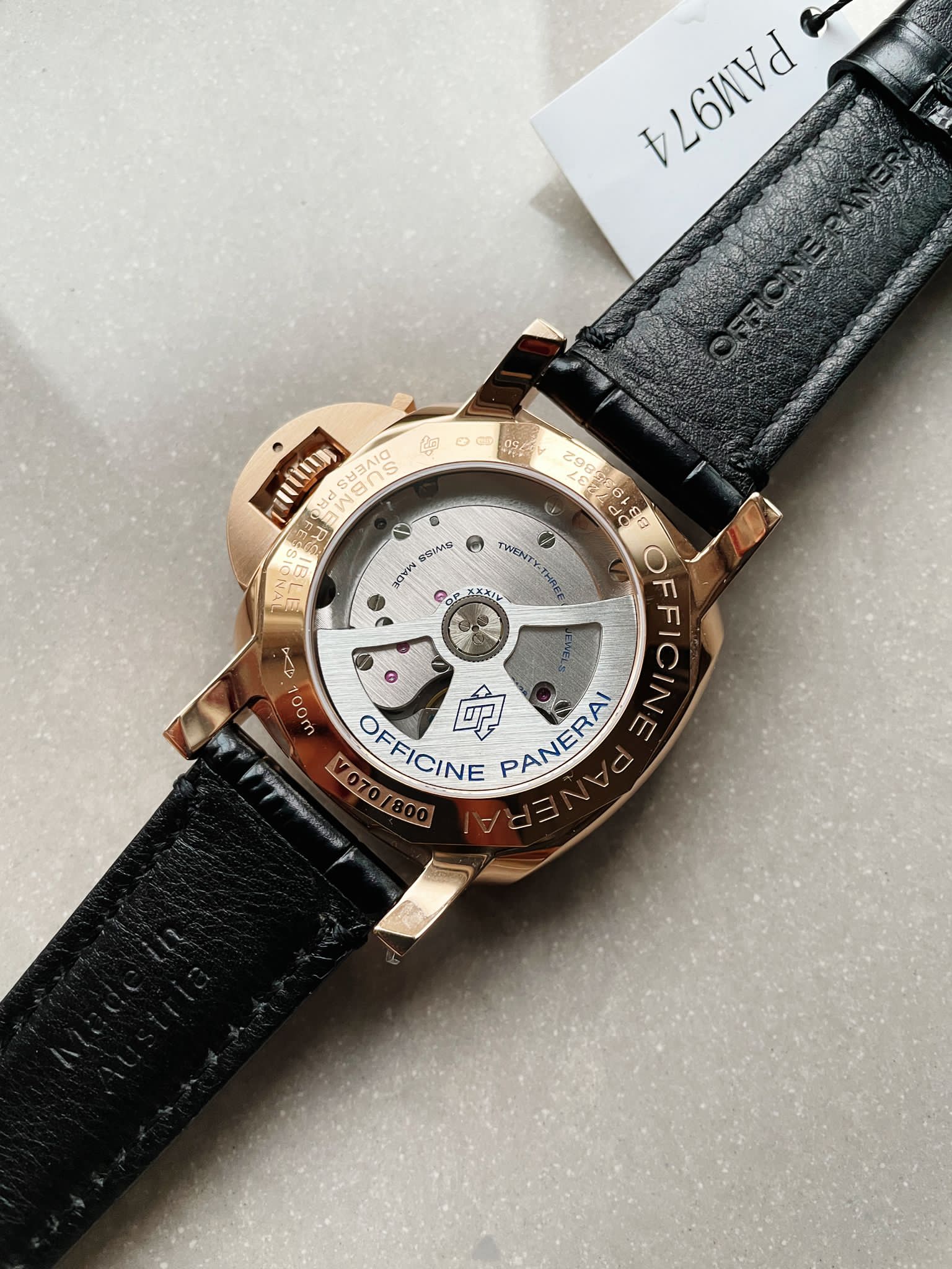 | movement | Custom designed Asian automatic movement to match the genuine Panerai OP XXXIV movement at 28800vph |