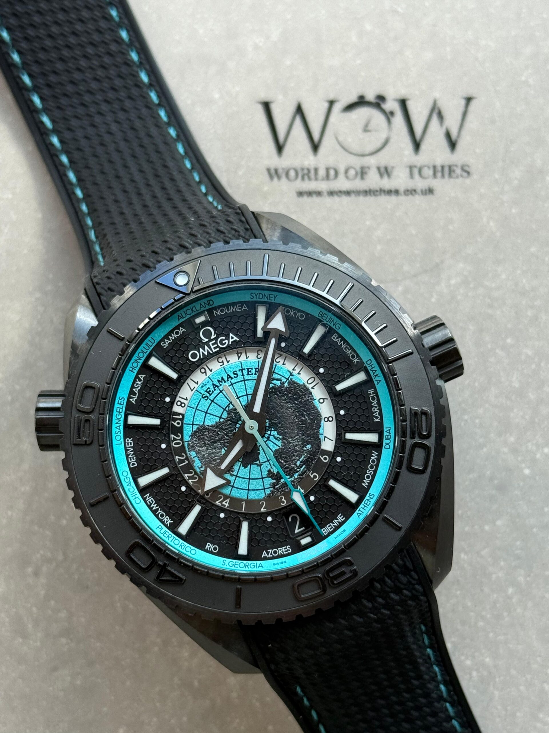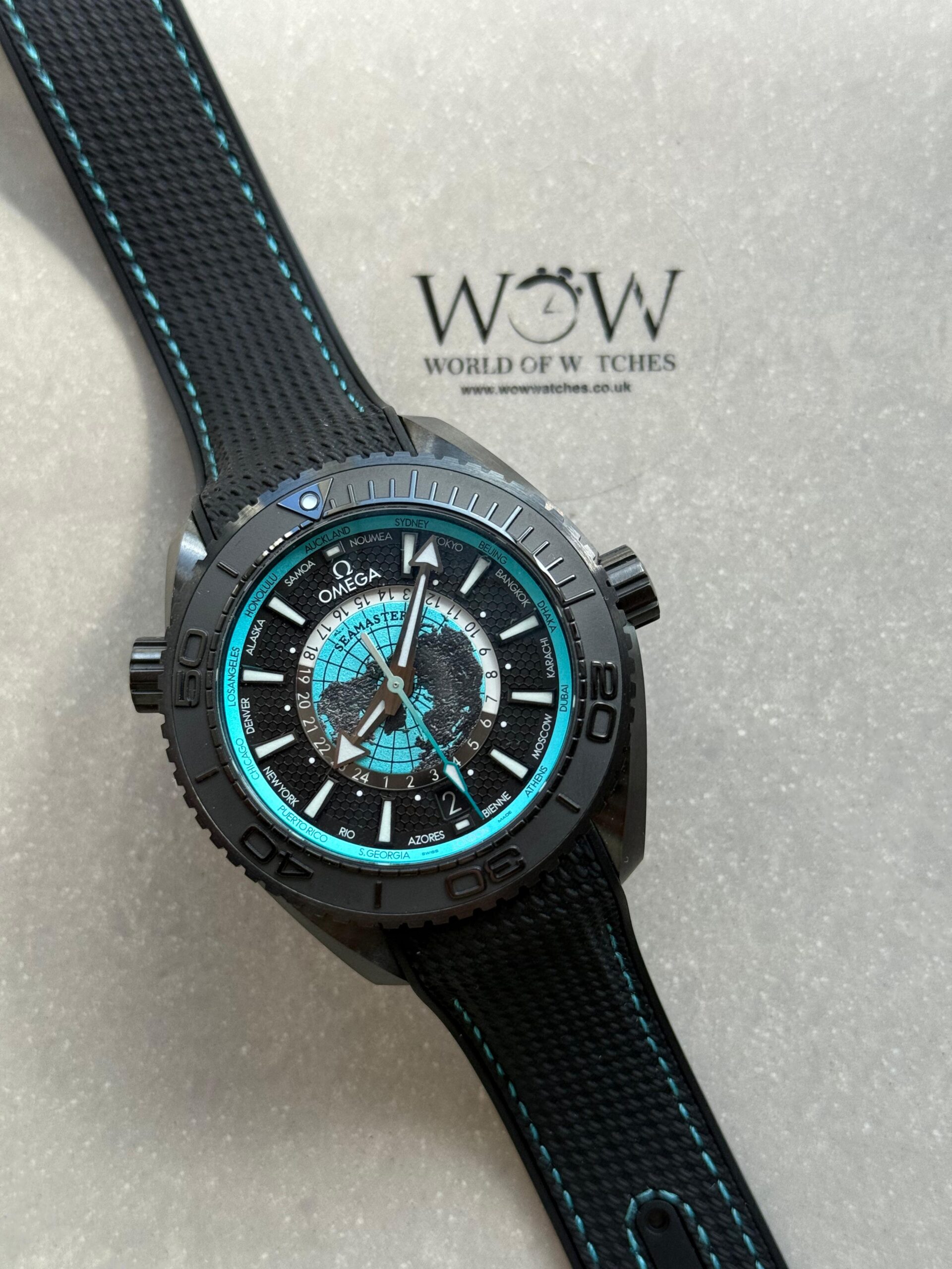 Planet Ocean 45.5mm GMT Worldtimer Real Ceramic VSF 1:1 Best Edition Black/blue Dial On Black Rubber Strap Super Clone 8938
