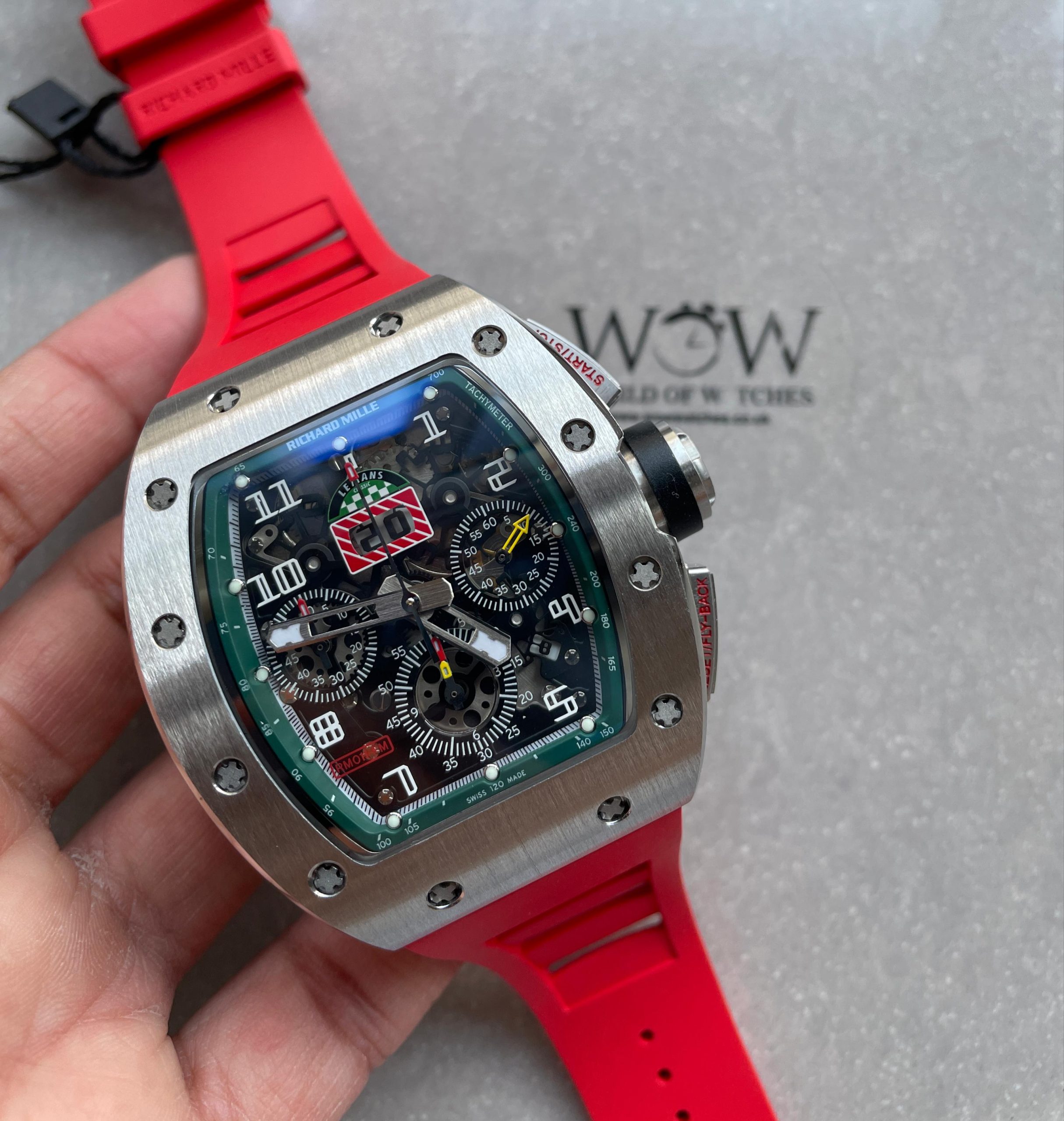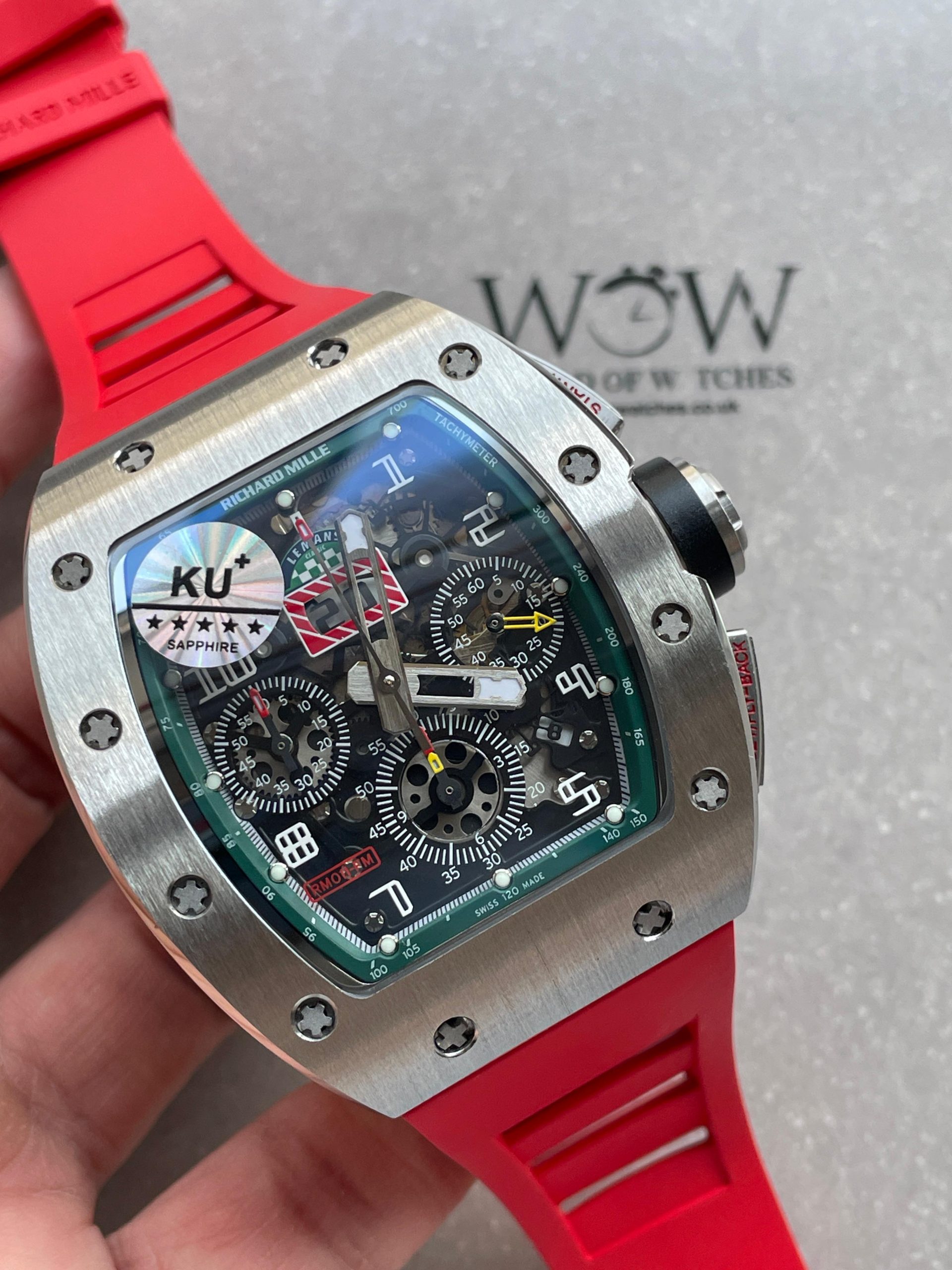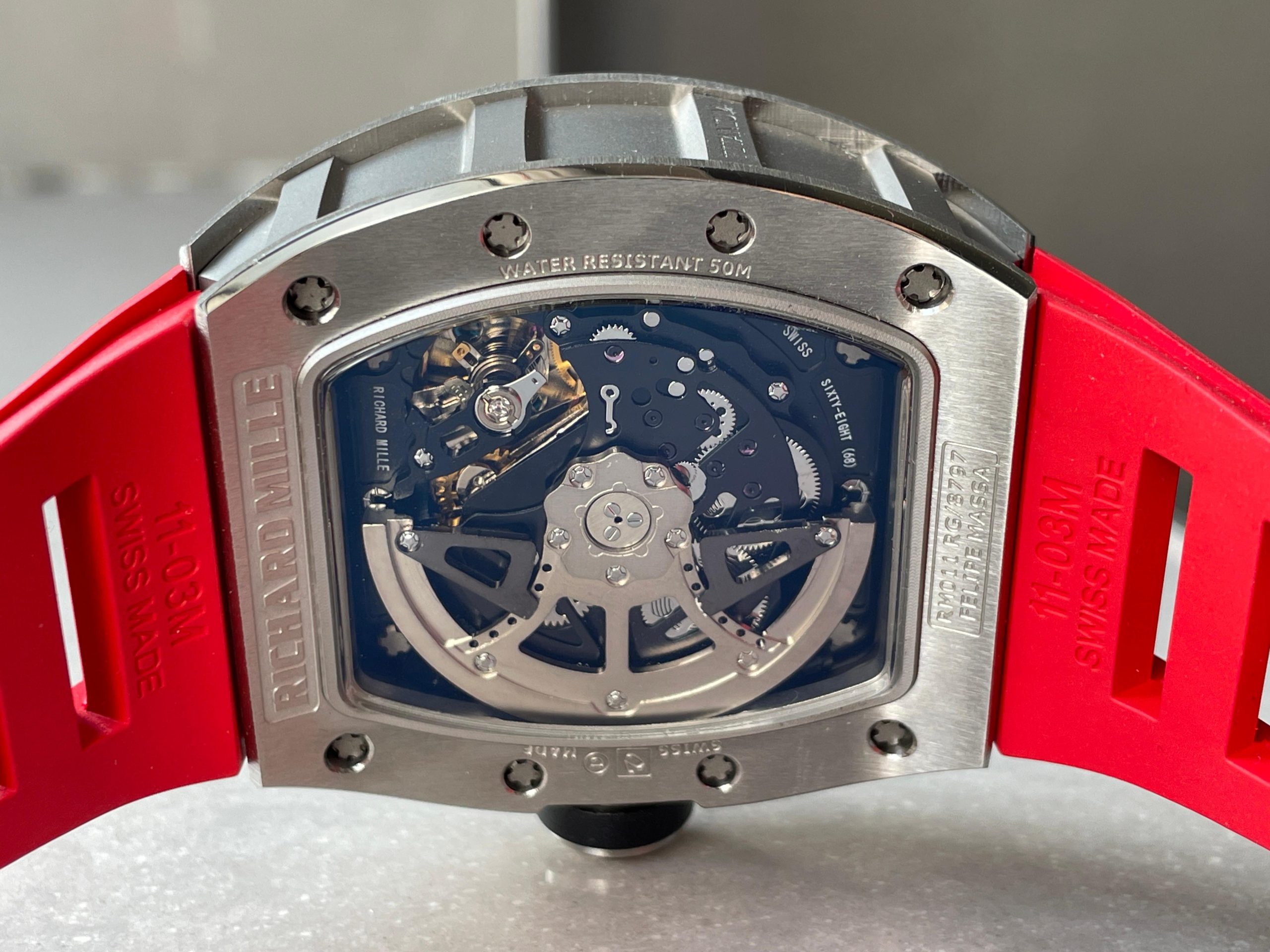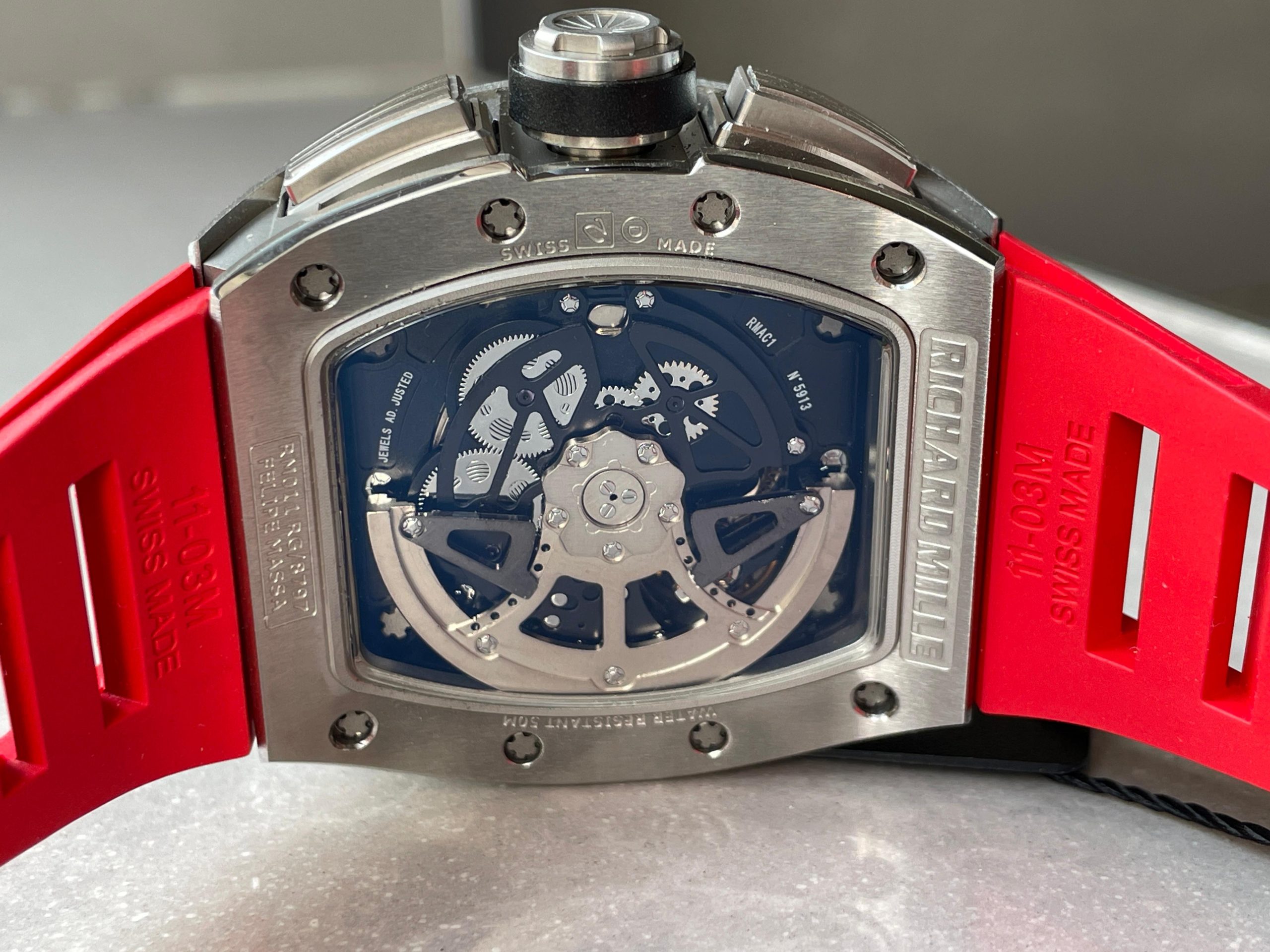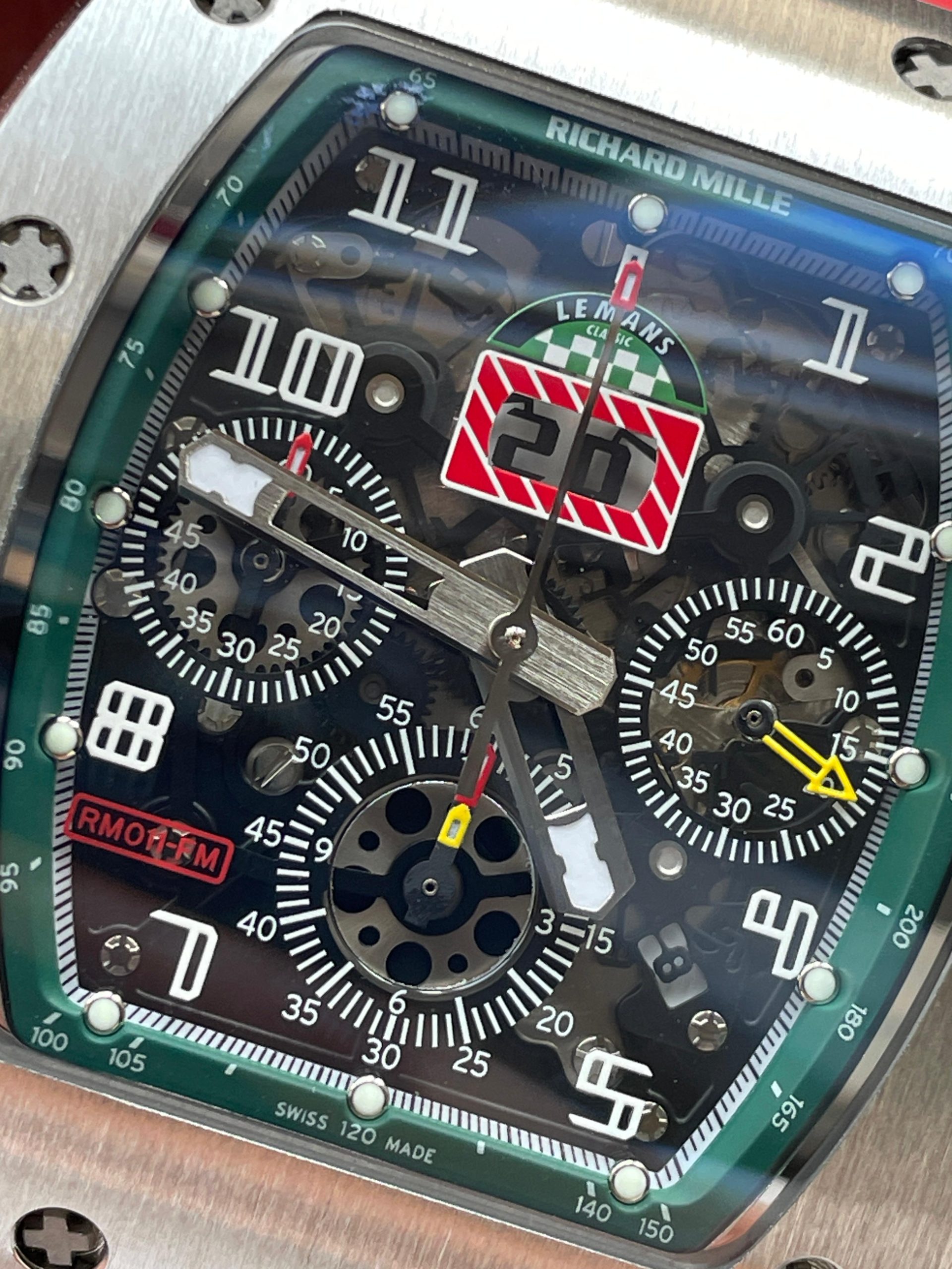 | movement | Asian 7750 automatic chronograph movement with big date display decorated to RM movement; t 28,800 VPH |