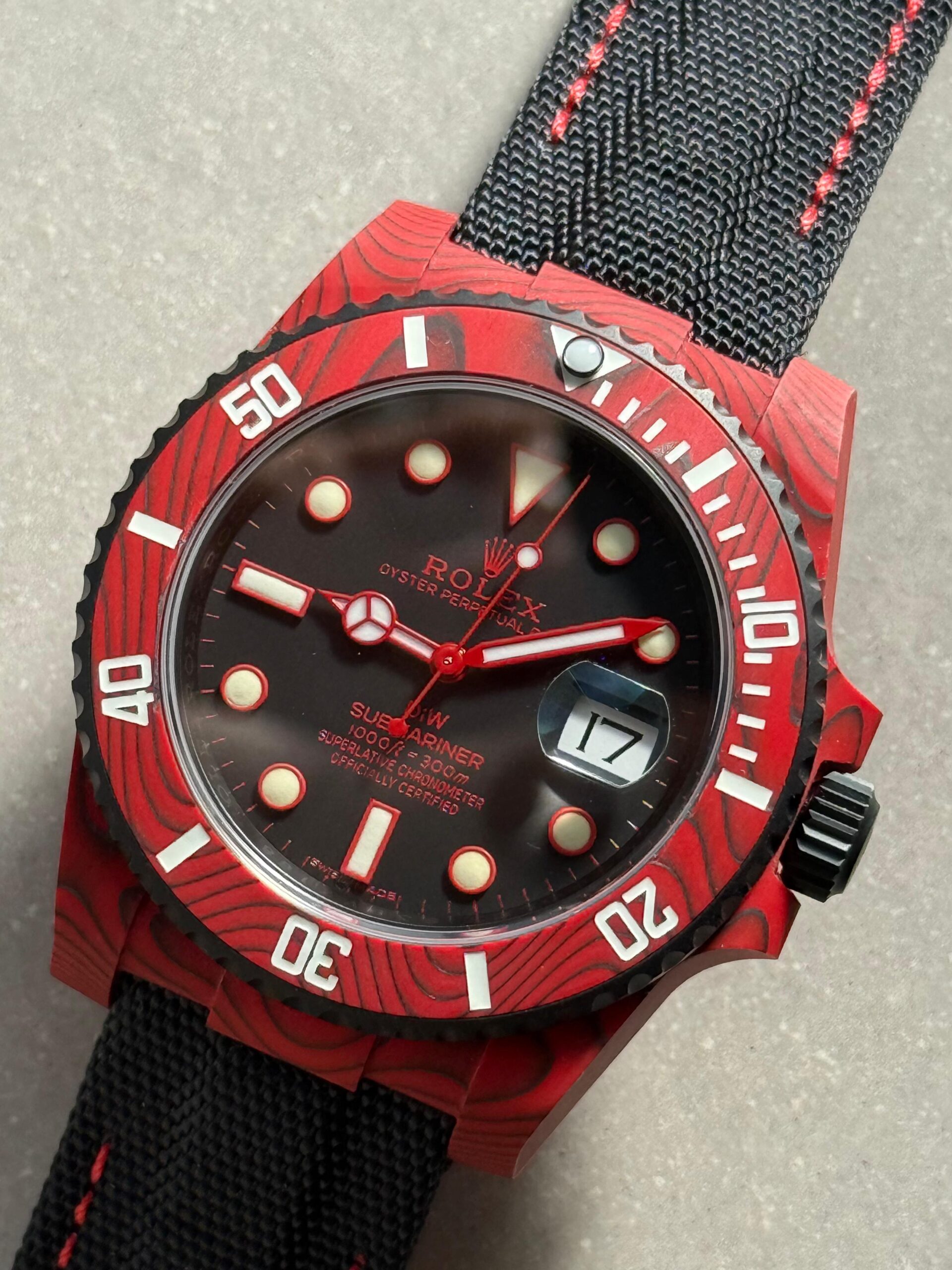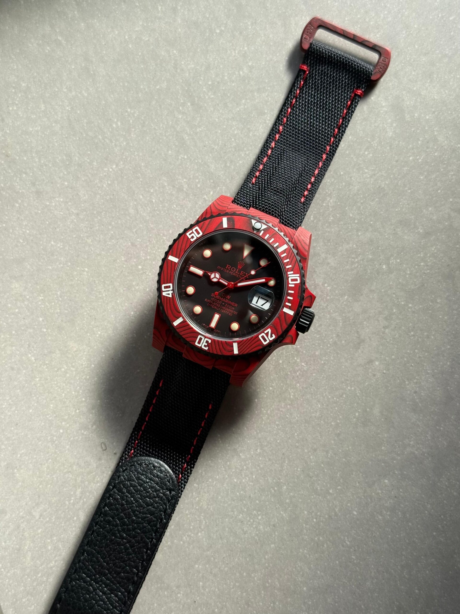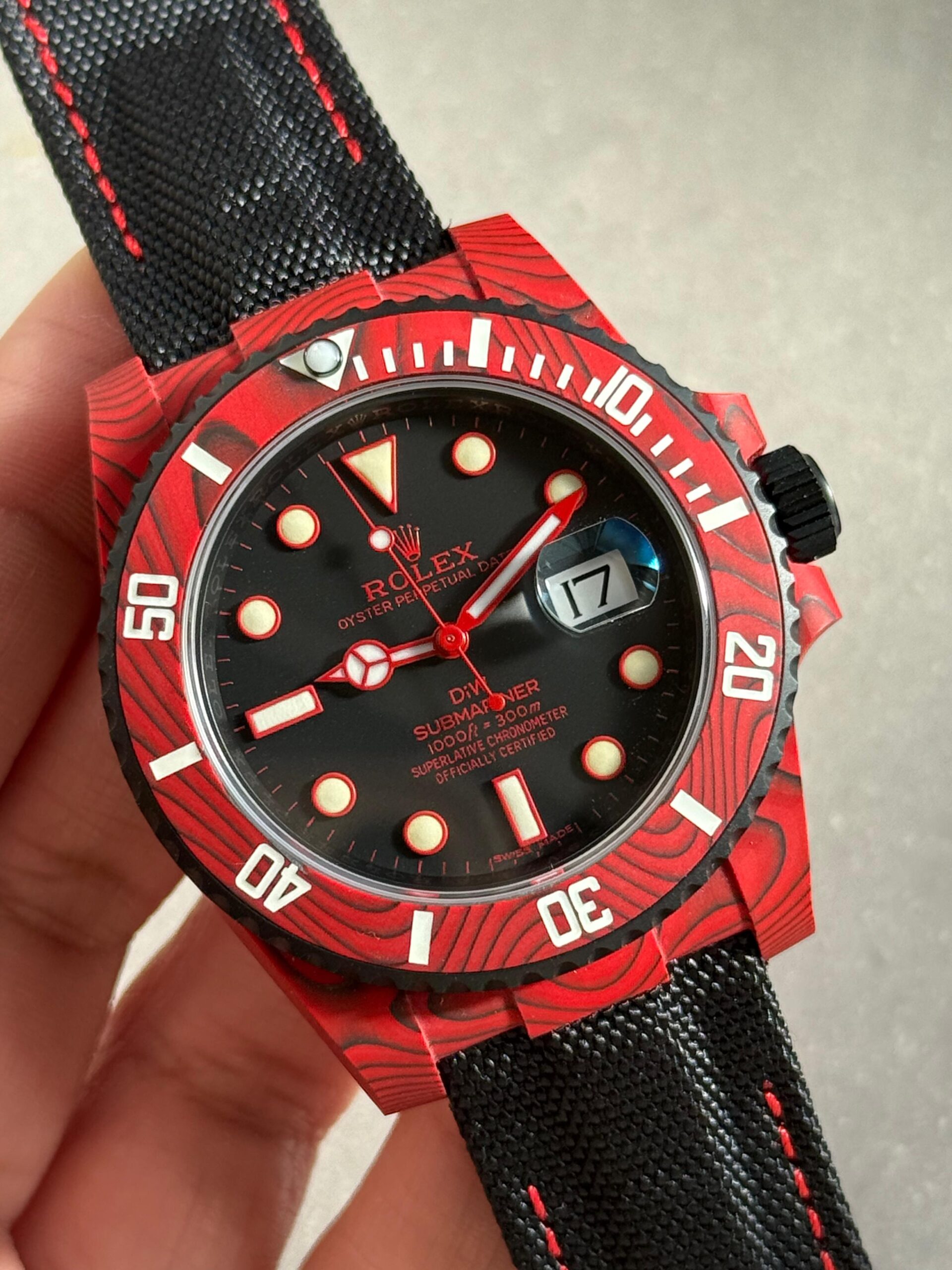 | bezel | Uni-directional rotating green carbon bezel |