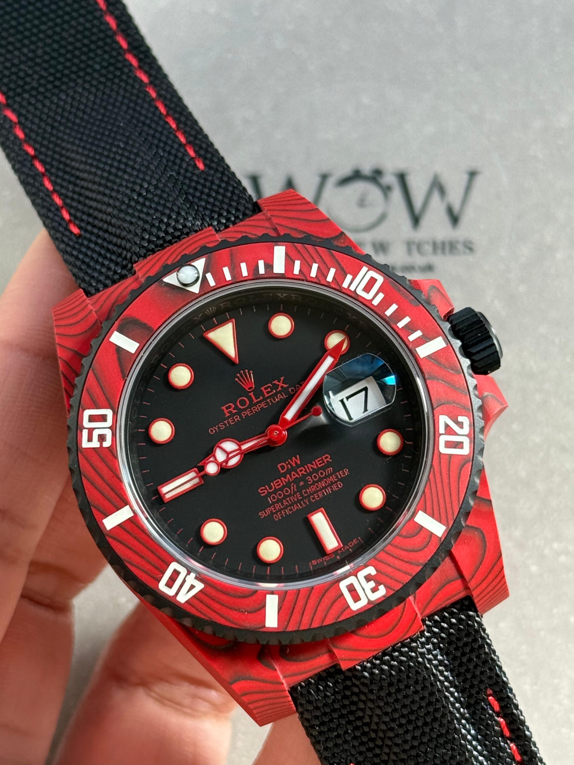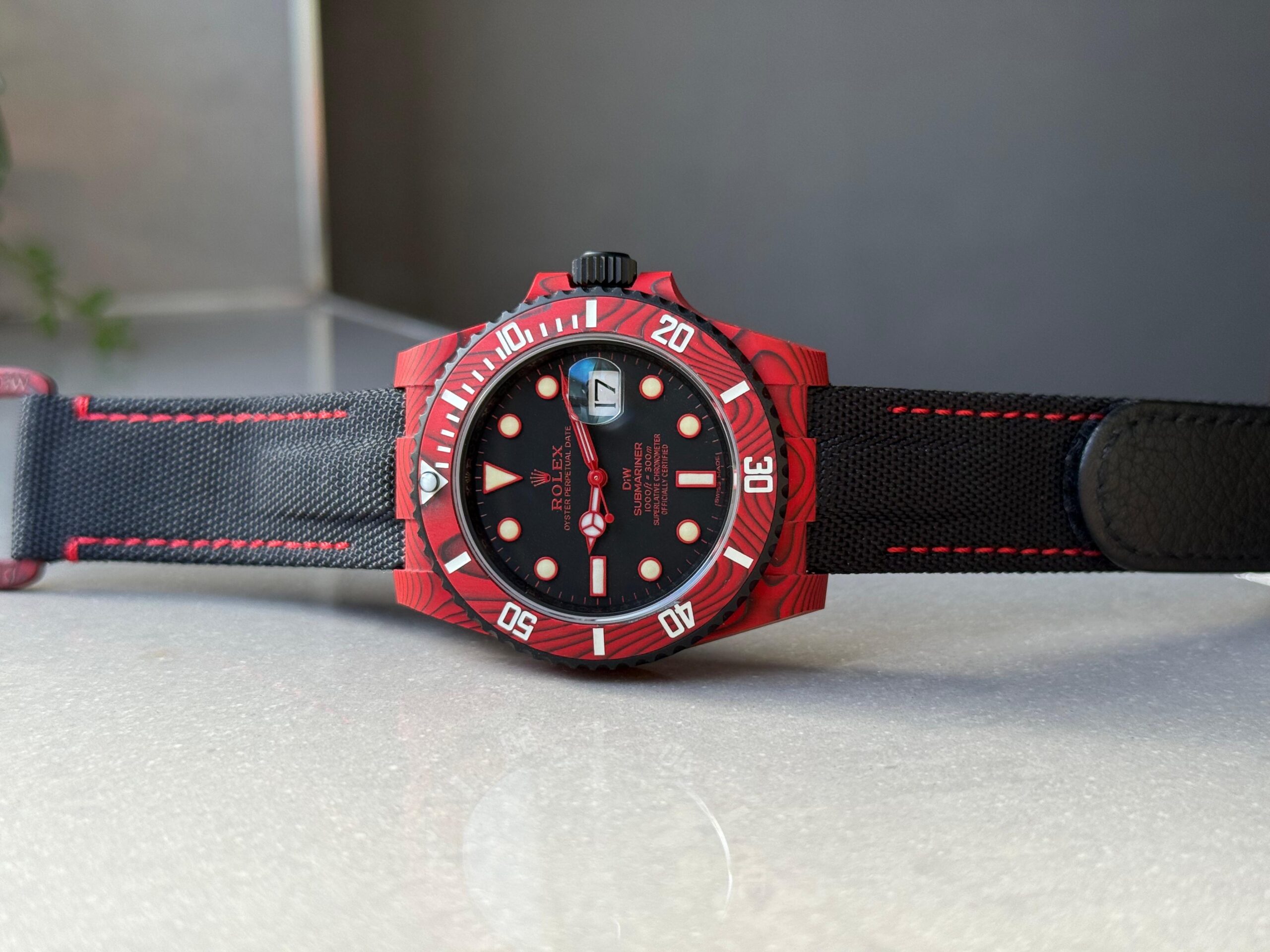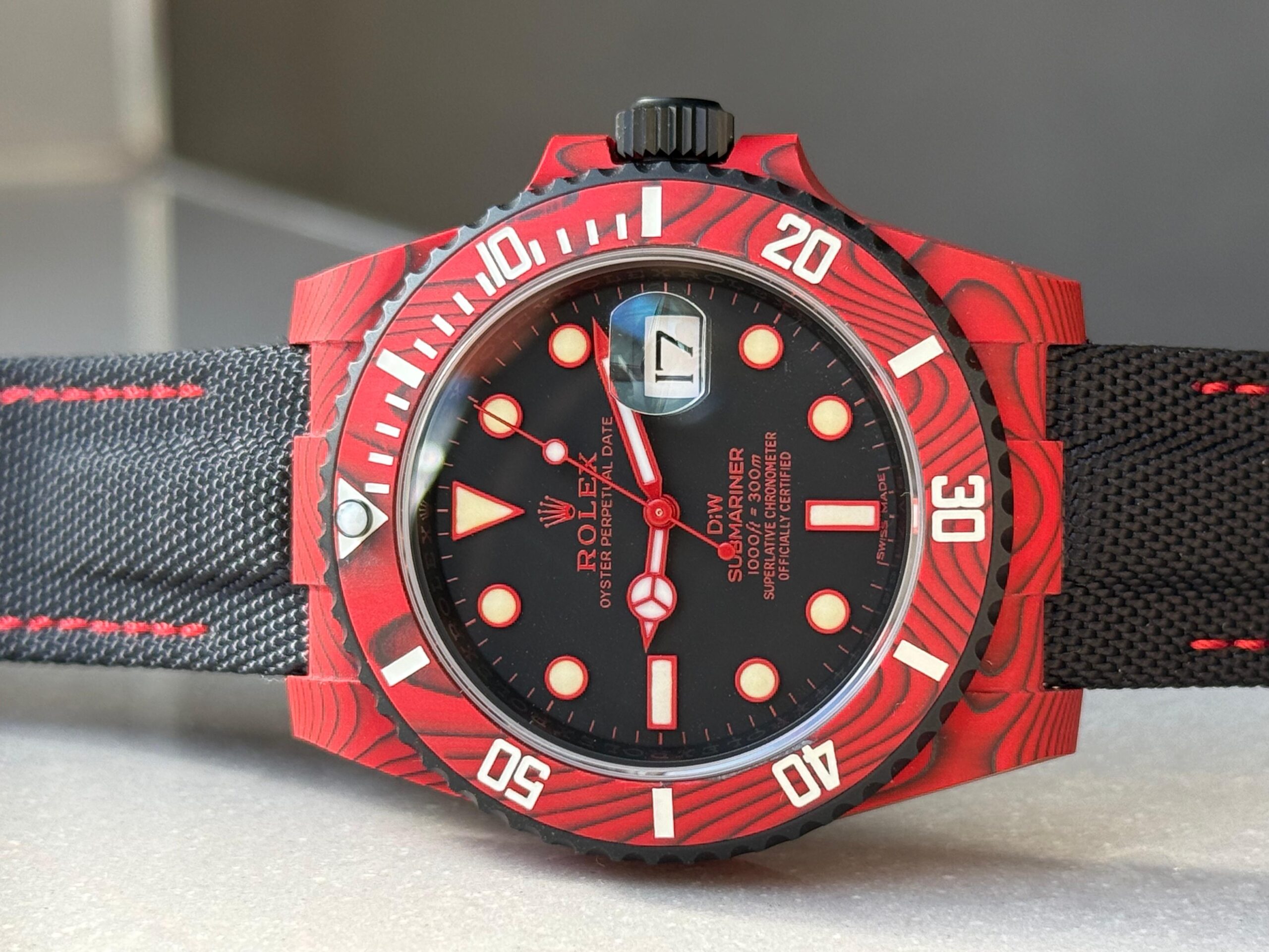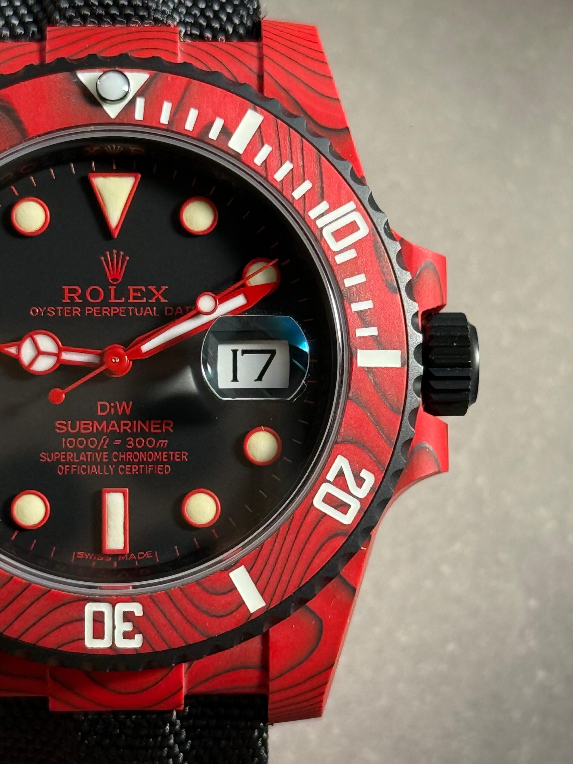 | bezel | Uni-directional rotating green carbon bezel |